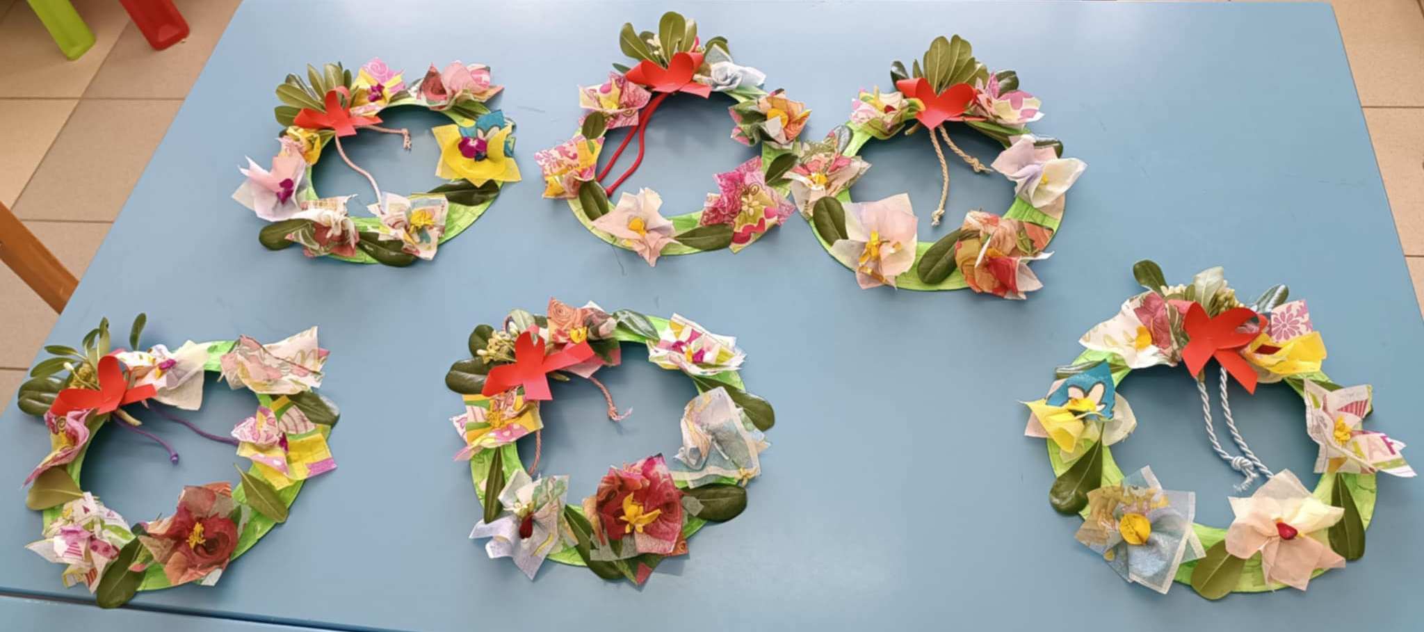 🖌️ Τα παιδιά κατασκεύασαν υπέροχα στεφάνια και βάζα με λουλούδια από χαρτοπετσέτες , χρωματιστά χαρτόνια και φυσικά λουλούδια!.