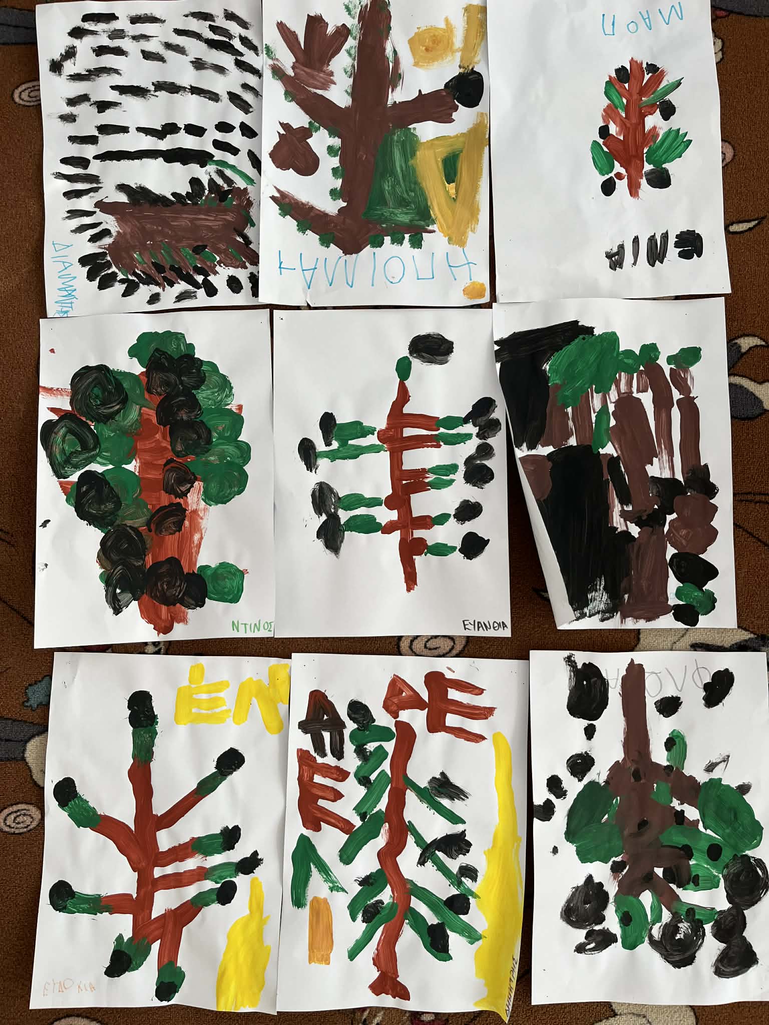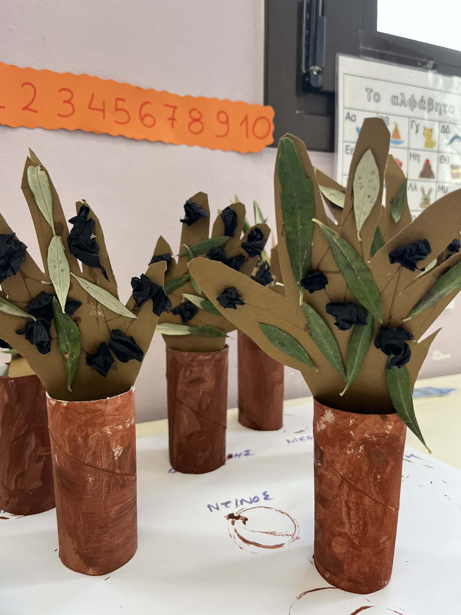 Κάθε παιδί δημιούργησε το δικό του ελαιόδεντρο με φυσικά υλικά, καθώς και ένα μικρό καδράκι για να πάρει στο σπίτι — γεμάτο χρώμα, υφή και φαντασία.