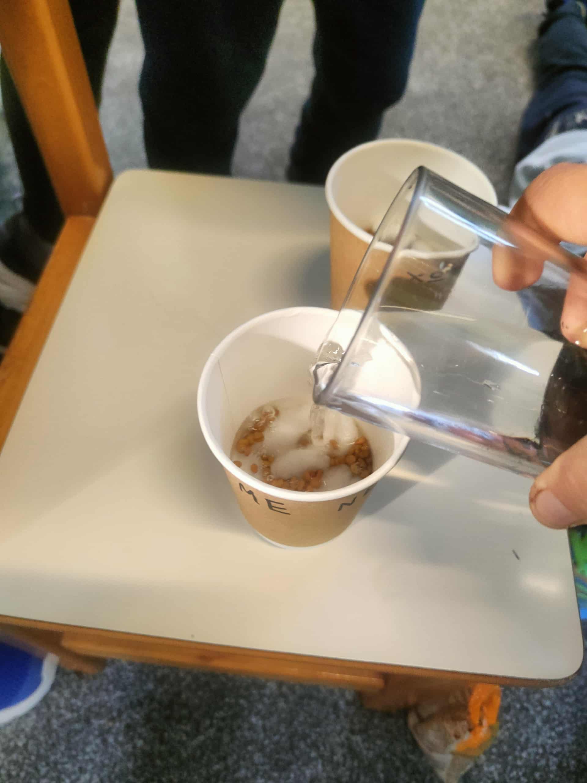 Μέσα σε ποτηράκι ένα κλαδάκι βασιλικού συνόδευε ένα γραμματάκι για τα παιδιά με λόγια ζεστά και γλυκά για τη νέα τους αρχή στο νηπιαγωγείο.