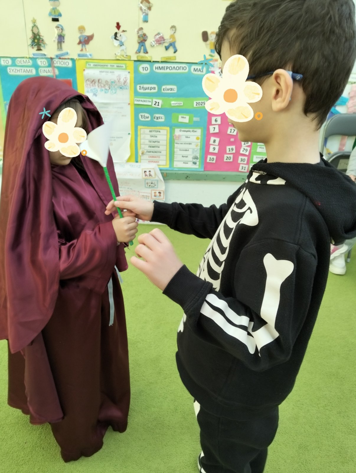 Στα παιδιά του ολοήμερου τμήματος παρουσιάστηκε ο Γιώργης ,ένα τσολιαδάκι χαμένο στο χρόνο.
