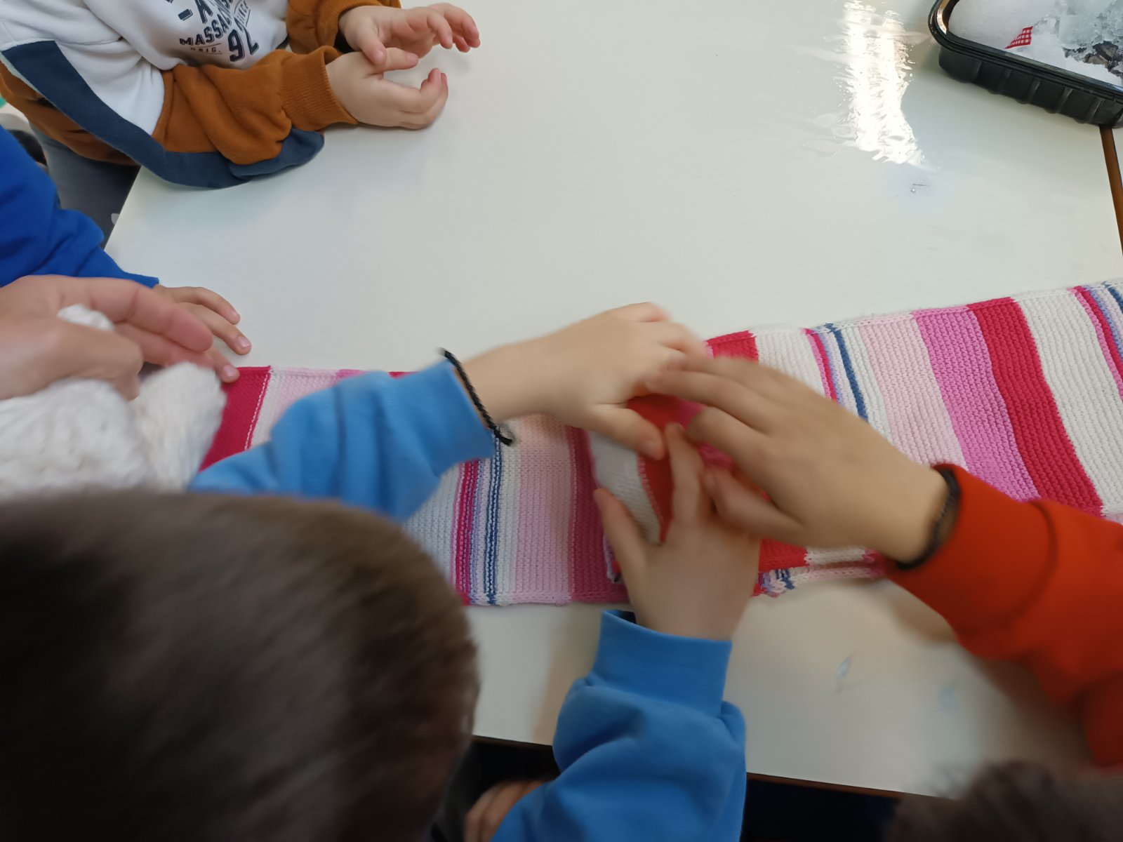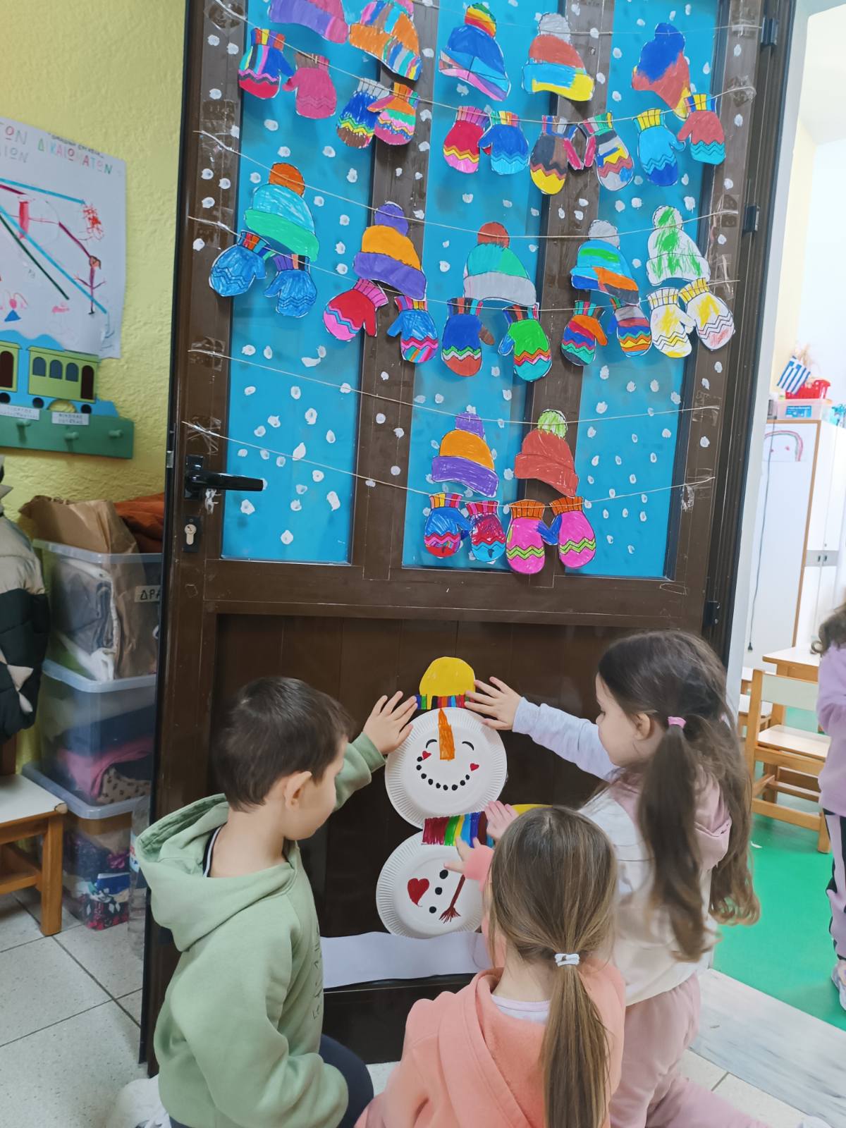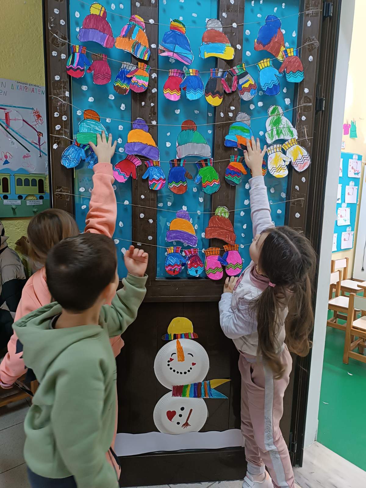 Χειμωνιάτικο σκηνικό στην τάξη μας με κασκόλ και γαντάκια φτιαγμένα από