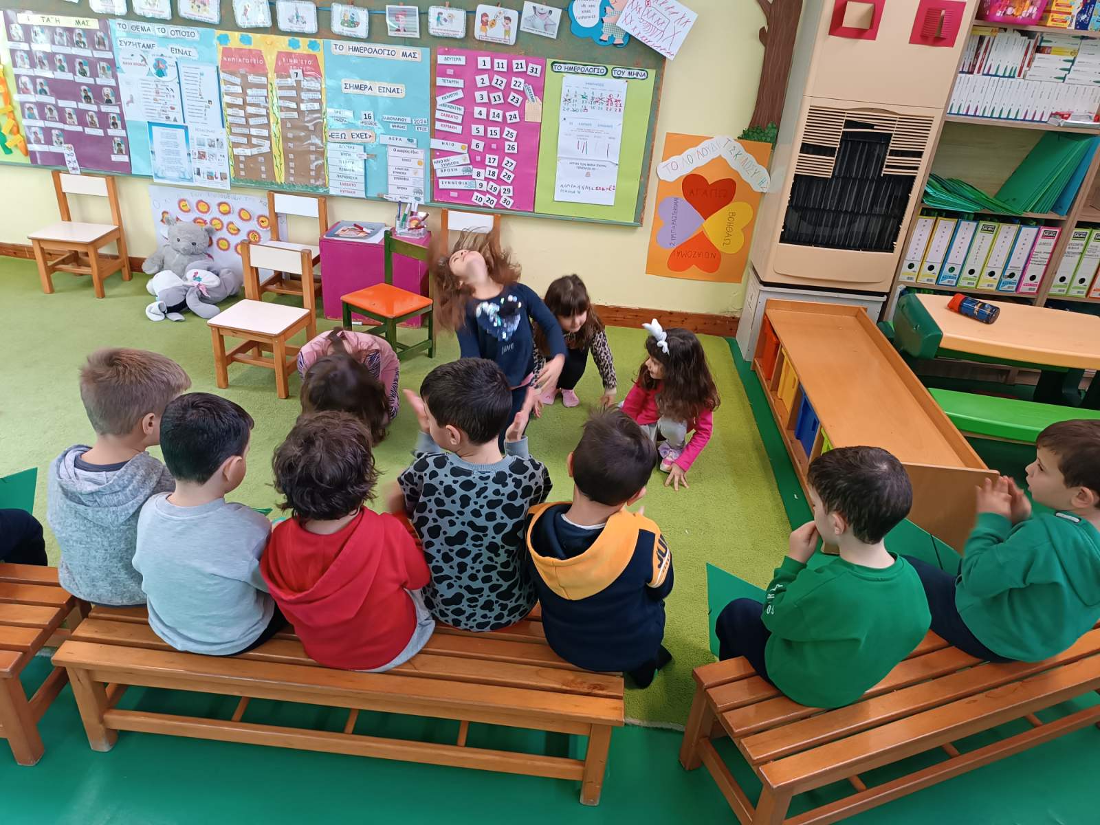 Για να ζεσταθούμε τραγουδήσαμε και παίξαμε το παιχνιδοτράγουδο