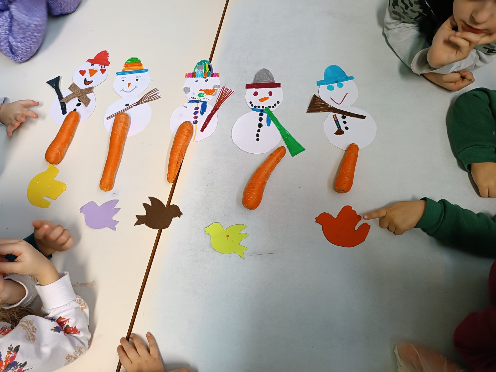 Παιχνίδια αντιστοίχισης με χιονανθρωπάκια καρότα και Πουλάκια