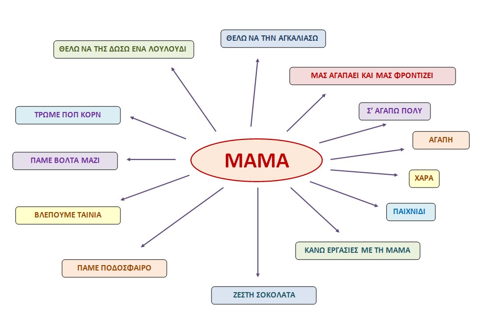 Μια όμορφη ιστορία της Αγγελικής Βαρελλά με τίτλο “Πως γράφεται η λέξη Μητέρα;” ( από το Ανθολόγιο λογοτεχνικών κειμένων για το νηπιαγωγείο) μας έμαθε από πού πήρε τα γράμματα της η λέξη ” ΜΗΤΕΡΑ”