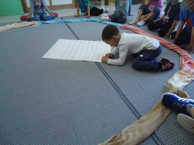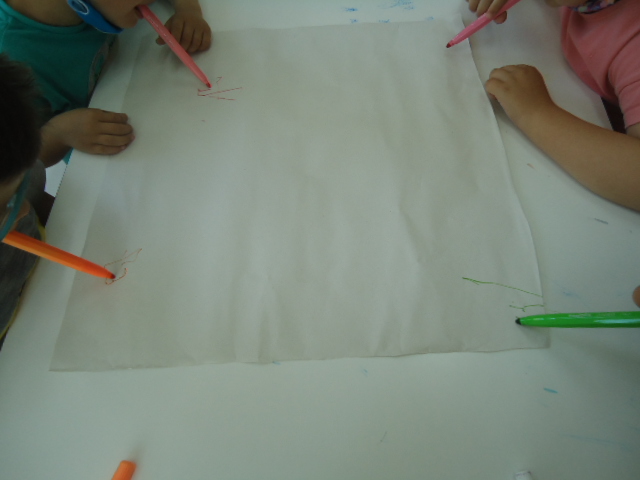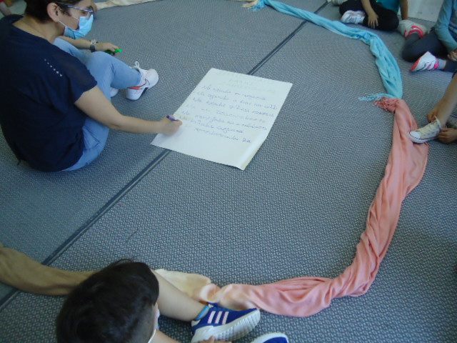 Τα παιδιά έλεγαν τις σωστές εκφράσεις και η Νηπιαγωγός έγραφε. Στο τέλος υπογράψαμε όλοι
