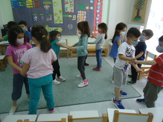 Τραγουδήσαμε το <<τραγούδι της φιλίας>> και χορέψαμε όλοι μαζί αλλά και ζευγάρια με φιλους που αλλάζαμε κάθε φορά. Στο τέλος κάναμε όλοι μια μεγάλη αγκαλιά