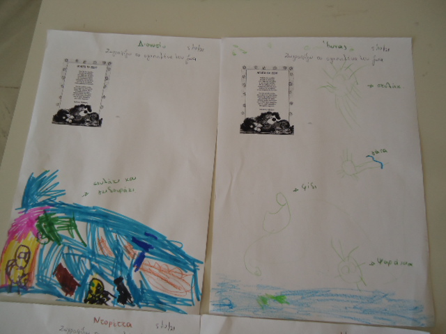 Στο τέλος ζωγραφίσαμε ο καθένας μια όμορφη μέρα με τον παππού και τη γιαγιά