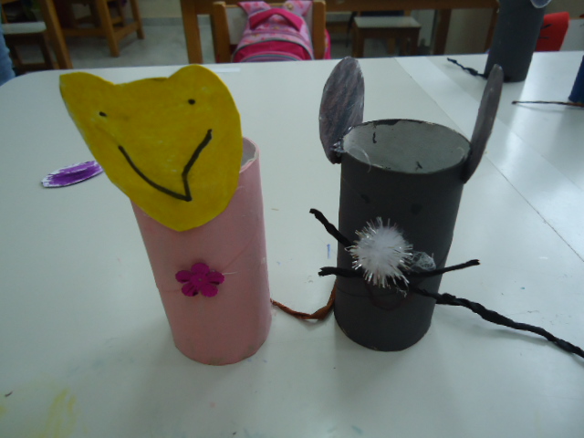 και τέλος αξιοποιήσαμε τα ρολά υγείας δημιουργώντας <<ποντικάκι>>και <<γατούλα>> μπαίνοντας έτσι στο πνεύμα της ανακύκλωσης και επαναχρησιμοποίησης υλικών