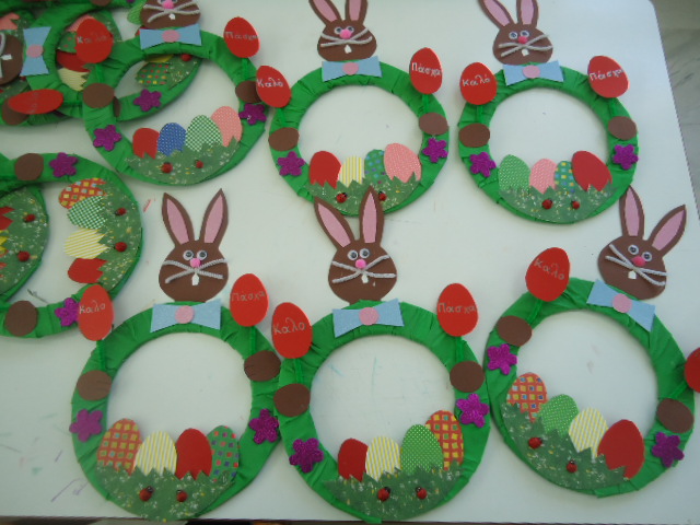 Χρωματίσαμε αυγά και δημιουργήσαμε ομαδική εργασία στεφάνι σε σχήμα αυγού
