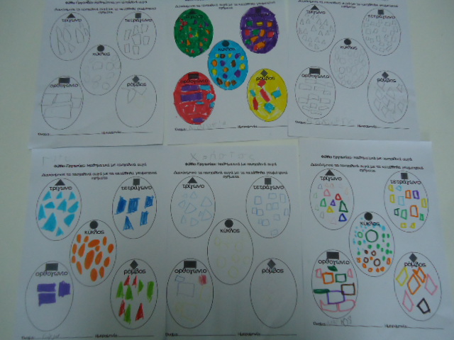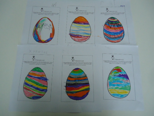 Ομαδική εργασία -διακόσμηση μεγάλων αυγών με σχήματα