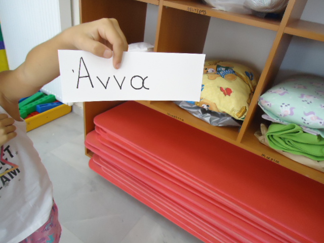 Αφού παίξαμε διάφορα παιχνίδια με το όνομά μας , στολίσαμε το αρχικό με χρωματιστά χαρτάκια που κόψαμε