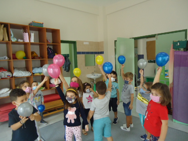 Δραματοποιήσαμε την ιστορία και γράψαμε τα δικά μας συνθήματα στα μπαλόνια για να τα στείλουμε στο μαγικό αστέρι κι αυτό με τη σειρά του να σκορπίσει σε μας φιλία, αγάπη, συνεργασία, χαρά και ποτέ τσακωμούς