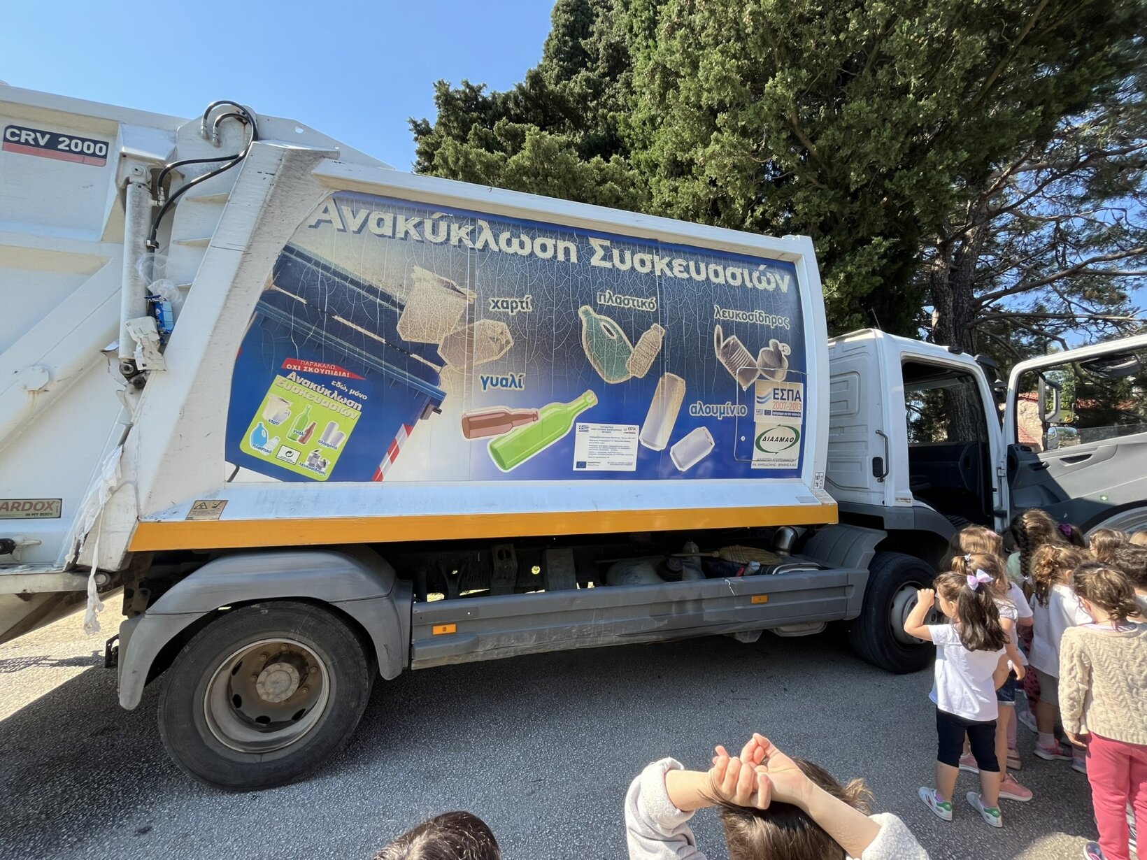 Έτσι, τα παιδιά είχαν την ευκαιρία να δουν από κοντά το φορτηγό, να παρακολουθήσουν πως μεταφέρονται τα ανακυκλώσιμα υλικά σε αυτό και να κάνουν ερωτήσεις που είχαμε ετοιμάσει στην τάξη.