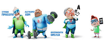 Ο Αλέξης με τον παππού Πέτρο που έχει υπερδύναμη στο πρόσωπό του και κάνει αστείες γκριμάτσες.