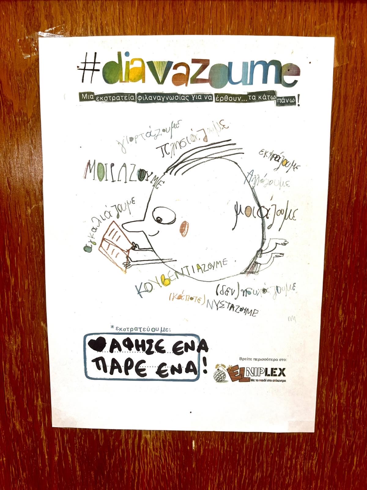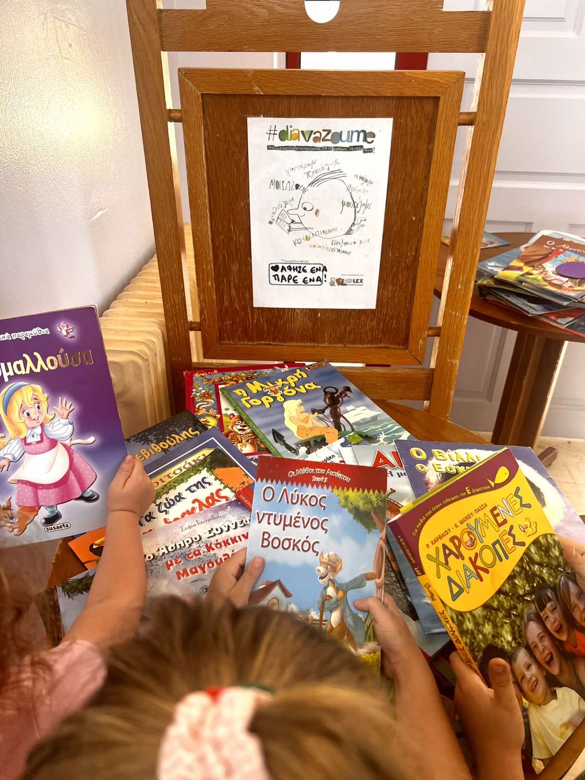Η δράση αυτή μας έδωσε την ευκαιρία να καλλιεργήσουμε στα παιδιά μας την αγάπη για τα βιβλία, την αξία της προσφοράς, αλλά και τη χαρά της επικοινωνίας με άλλα παιδιά. Επιλέξαμε να στηθεί ένας πάγκος στο σχολείο, όπου κάθε παιδί μπορεί να αφήσει ένα βιβλίο και να πάρει ένα καινούριο. Ετσι, ανταλλάσουμε βιβλία χωρίς να υπάρχει κόστος..