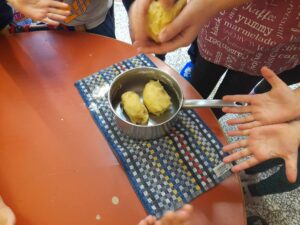 Με ενθουσιασμό αποφάσισαν να φτιάξουν χειροποίητες σκούπες από κλαδιά, χρησιμοποιώντας υλικά που βρήκαν στην αυλή. Γρήγορα έγινε μια ομαδική προσπάθεια: άλλοι μάζευαν κλαδάκια, άλλοι φύλλα, κι άλλοι δοκίμαζαν τις «μαγικές» σκούπες τους στην πράξη. Η αυλή γέμισε χαμόγελα, συνεργασία και κίνηση· μια πραγματική γιορτή φθινοπωρινής δημιουργικότητας.