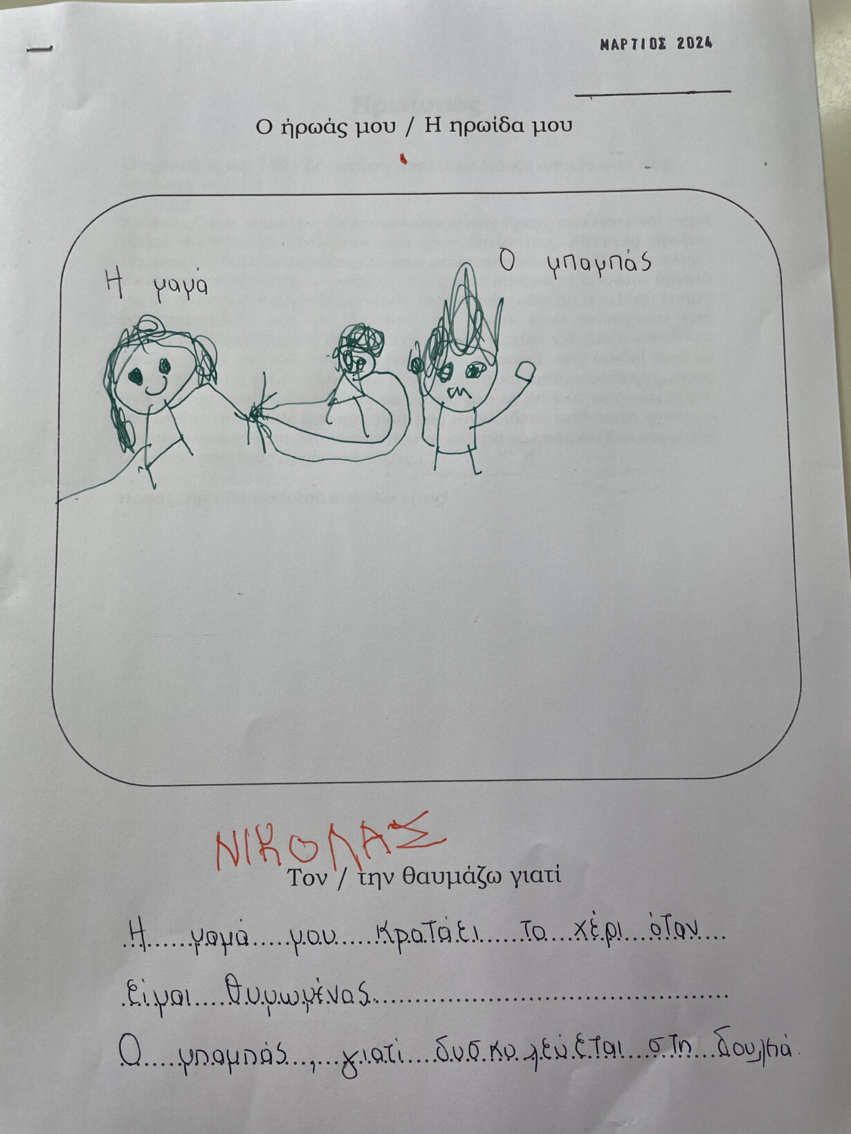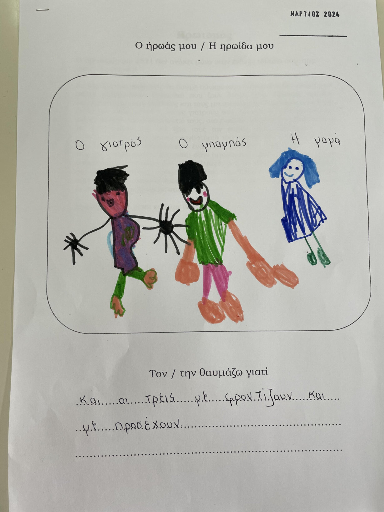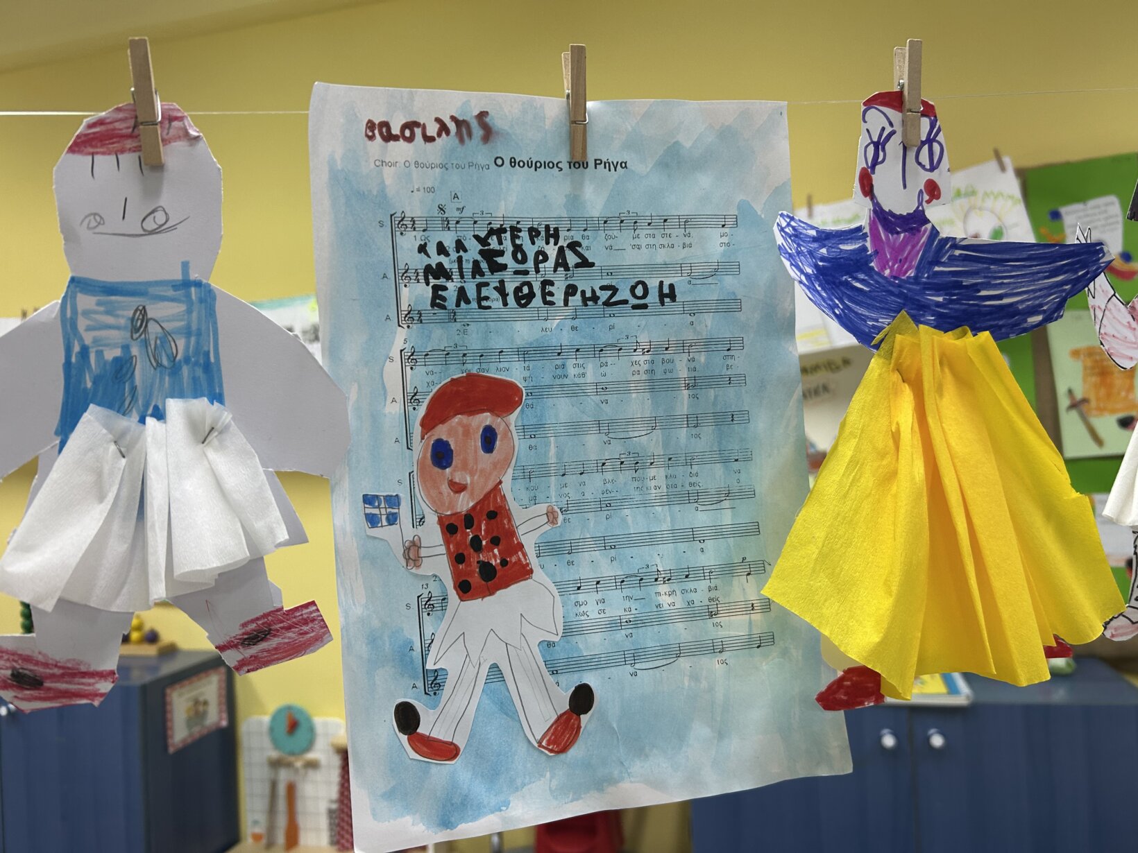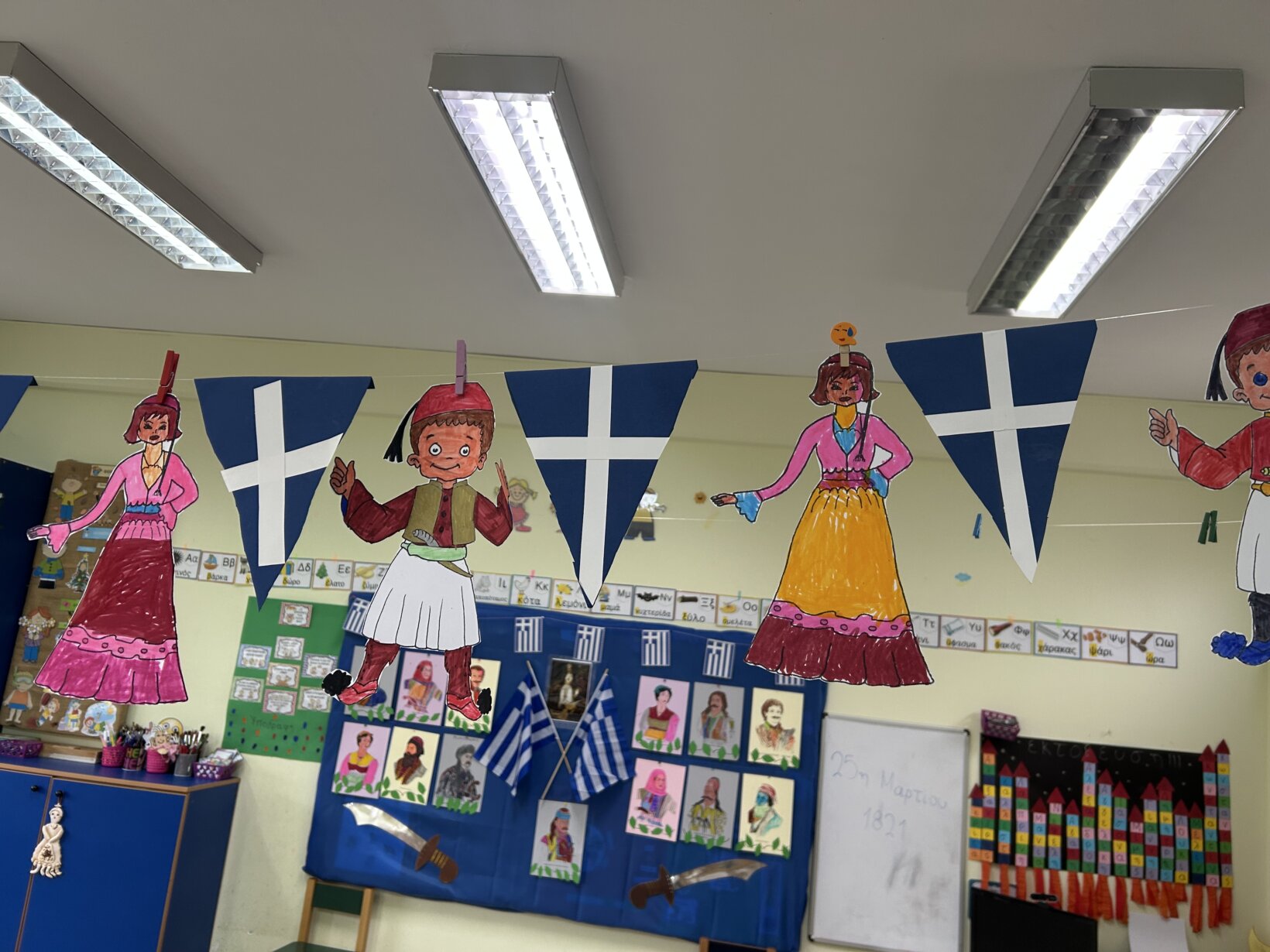 Παρατηρήσαμε τις ενδυμασίες εκείνης της εποχής , του τσολιά και της αμαλίας και στη συνέχεια τους κατασκευάσαμε και ζωγραφασίσαμε. Ακόμα μιλήσαμε για τον Ευαγγελισμό της Θεοτόκου. Οι μαθητές ζωγράφισαν την αναπαράσταση του Ευαγγελισμού.