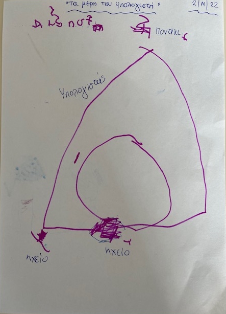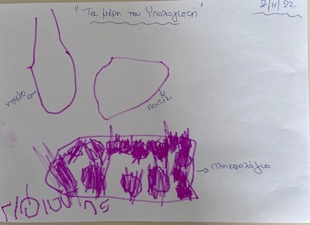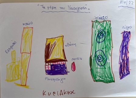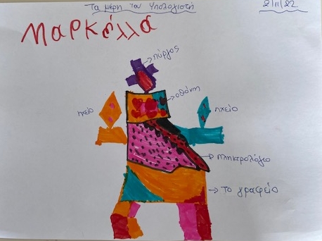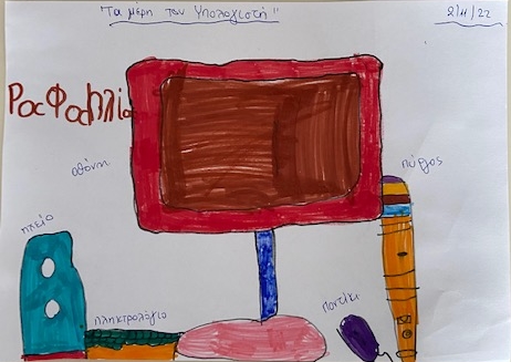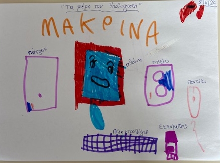 Στη συνέχεια, ζωγραφίσαμε τα μέρη από τα οποία αποτελείται ένας ηλεκτρονικός υπολογιστής.