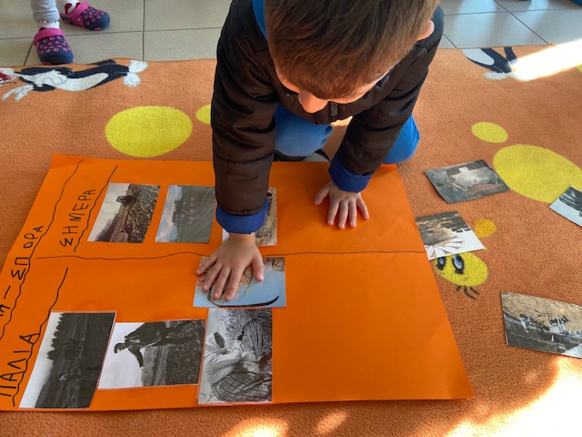 Αφού μιλήσαμε εκτενώς για το όργωμα και τη σπορά, είδαμε σχετικά βίντεο, τραγουδήσαμε και παίξαμε το τραγούδι: Ο γεωργός πάει στον αγρό, στη συνέχεια περάσαμε σε μια σειρά από δραστηριότητες.