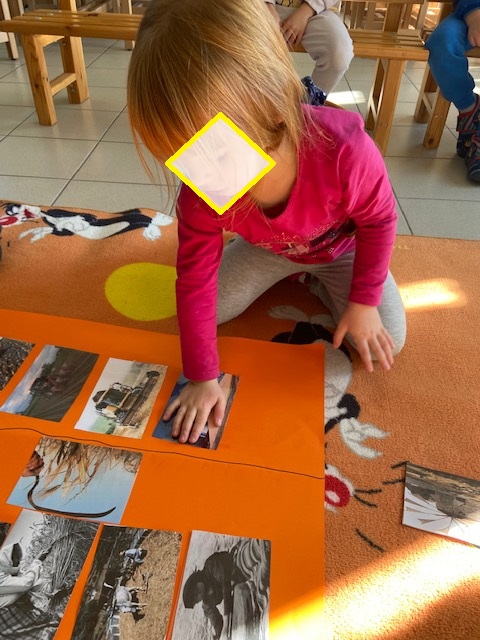 Επιλέξαμε με τα παιδιά εικόνες που δείχνουν το όργωμα και τη σπορά τα παλιά χρόνια και σήμερα, αλλά και όλη τη διαδικασία ως την παραγωγή ψωμιού.