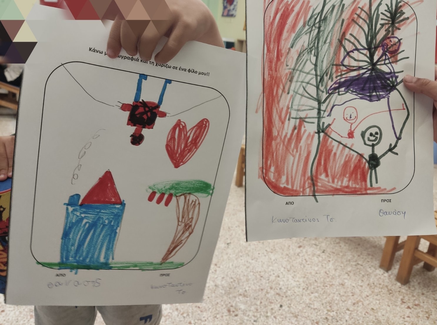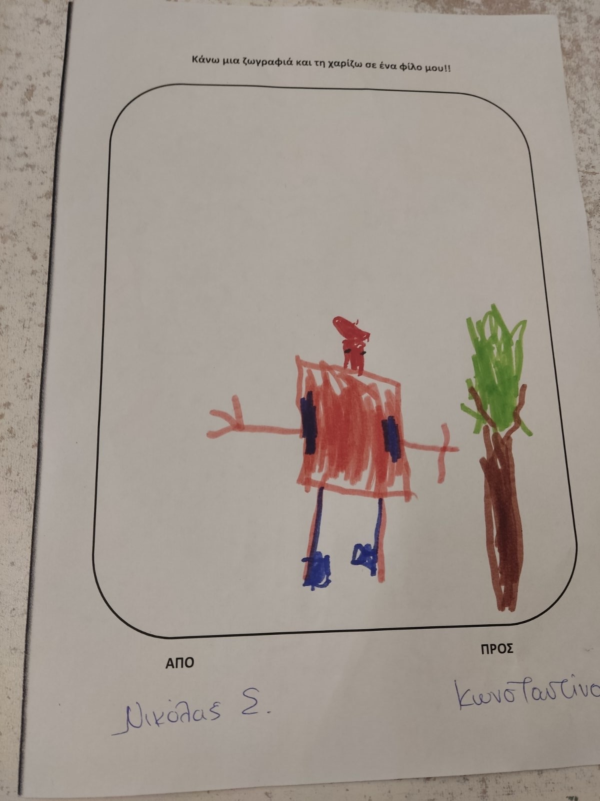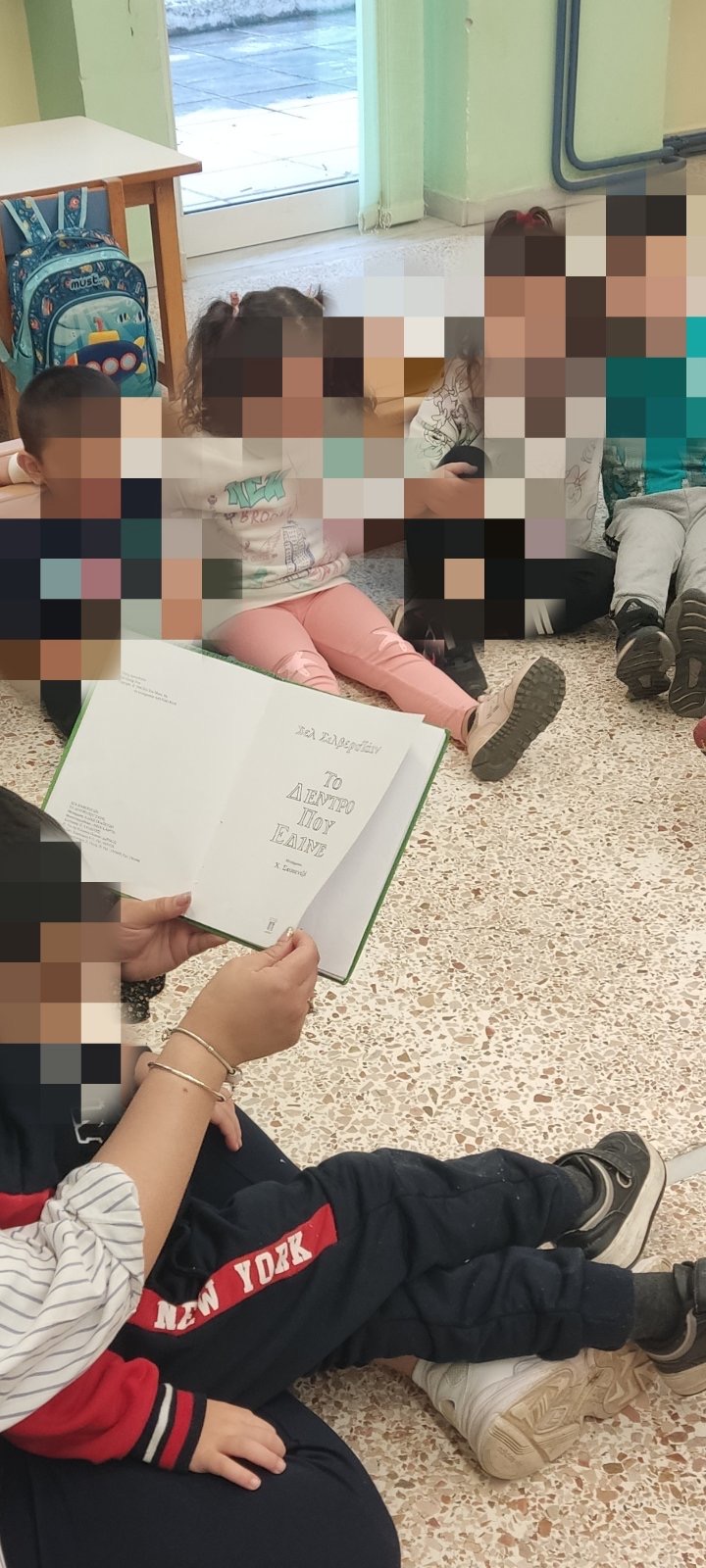 Διαβάσαμε το βιβλίο «Το δέντρο που έδινε» και μέσα από τη συζήτηση τα παιδιά κατανόησαν σημαντικές αξίες, όπως η φιλία, η καλοσύνη, η ανιδιοτελής αγάπη, και γνώρισαν την έννοια της προσφοράς. Το κάθε παιδί έφτιαξε και πρόσφερε μια ζωγραφιά σε έναν φίλο του.
