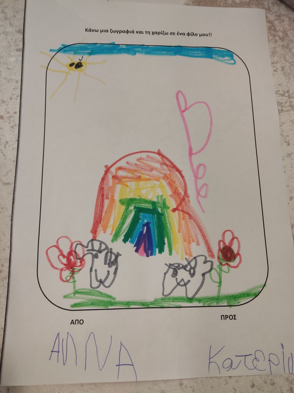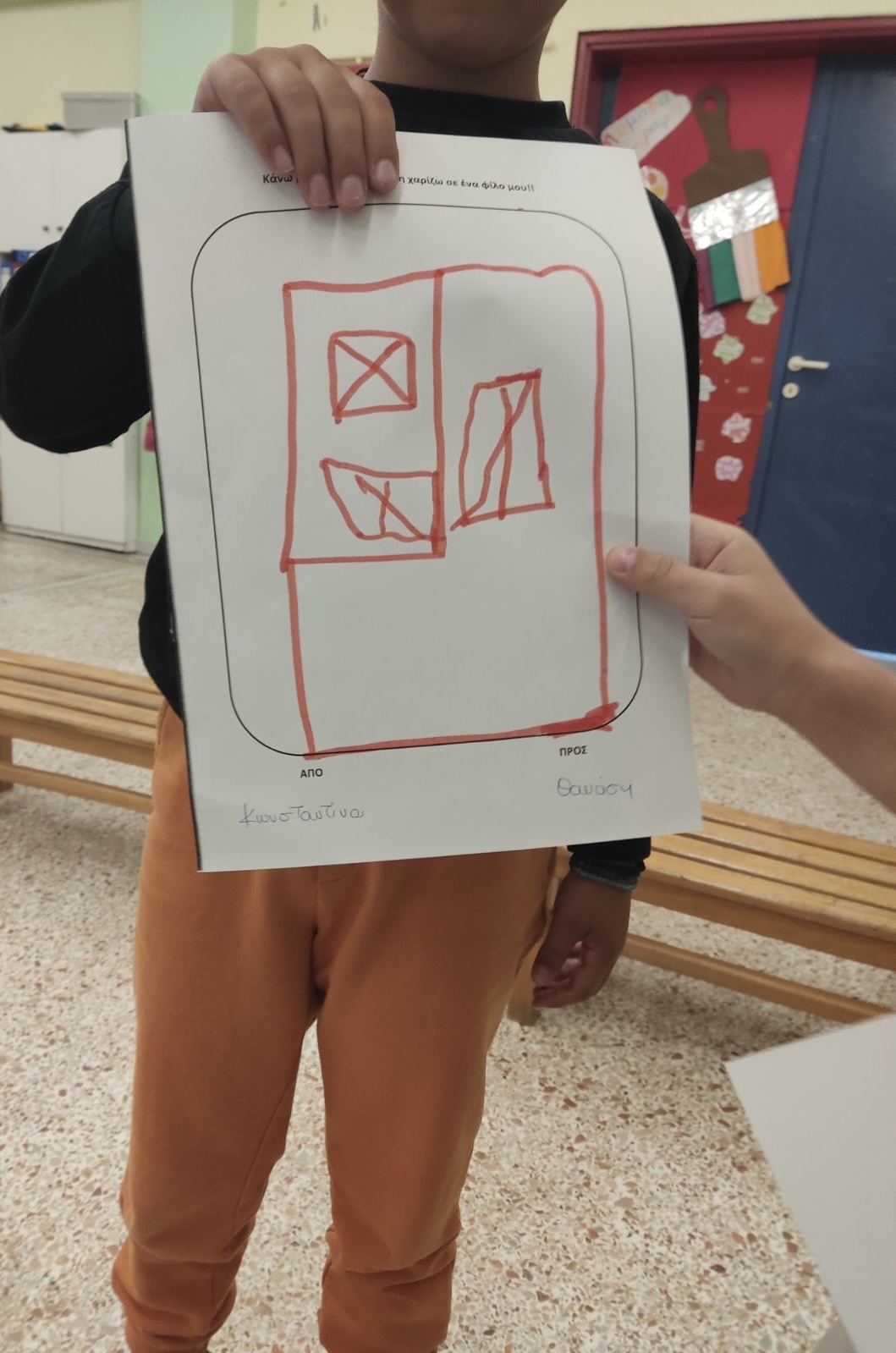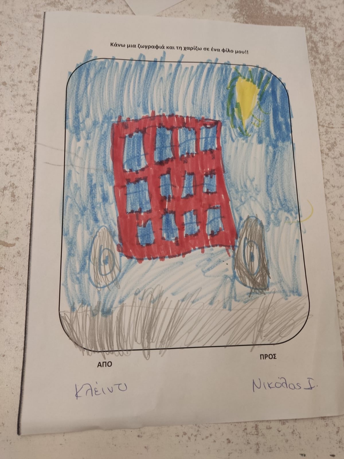 Διαβάσαμε το βιβλίο «Το δέντρο που έδινε» και μέσα από τη συζήτηση τα παιδιά κατανόησαν σημαντικές αξίες, όπως η φιλία, η καλοσύνη, η ανιδιοτελής αγάπη, και γνώρισαν την έννοια της προσφοράς. Το κάθε παιδί έφτιαξε και πρόσφερε μια ζωγραφιά σε έναν φίλο του.