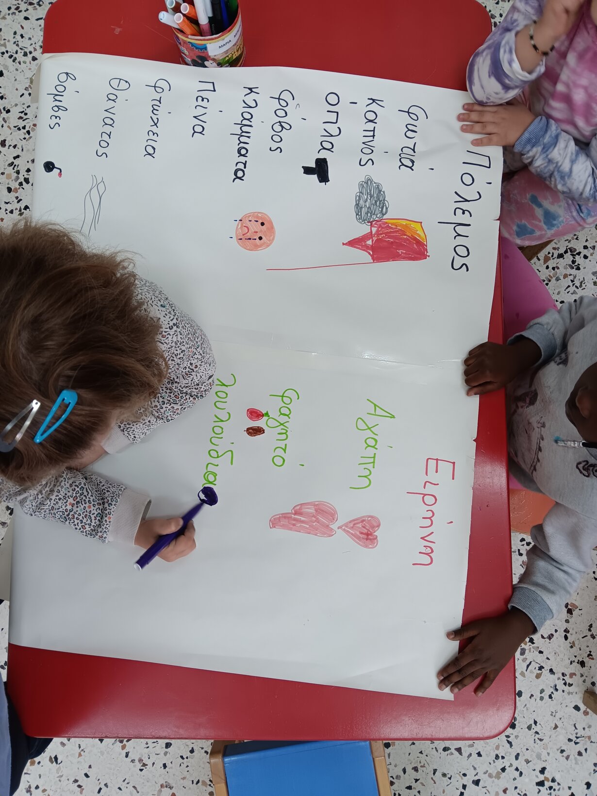 - Συζήτηση για την Ειρήνη: Τα παιδιά μοιράστηκαν ιδέες για το πώς μπορούμε να βοηθάμε ο ένας τον άλλον και να αποφεύγουμε τις διαφωνίες.