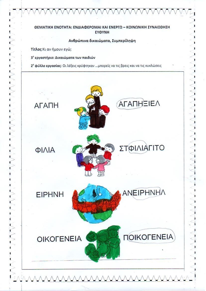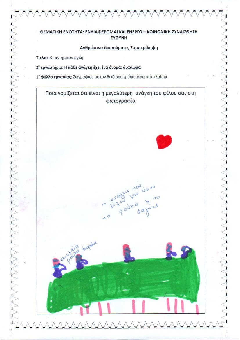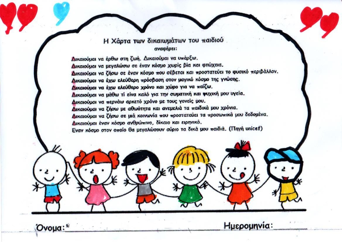 Τα παιδιά παρακολούθησαν σχετικό βίντεο. Ακόμη παρουσιάζονται στην ολομέλεια εικόνες, για την ομάδα των δικαιωμάτων, της ανάπτυξης, της επιβίωσης, της προστασίας και της συμμετοχής. Καταγράφονται οι απαντήσεις των παιδιών σχετικά με τα δικαιώματά τους.