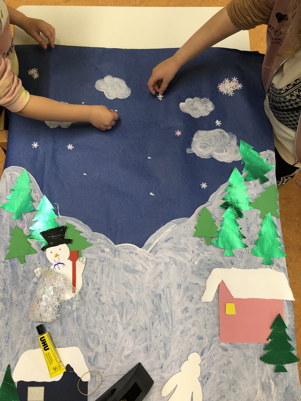 Το εργαστήριο ξεκίνησε με θαλασσινό κολλάζ από τις ζωγραφιές των παιδιών σχετικές με το πρώτο πράγμα που σκέφτονται για την θάλασσα.