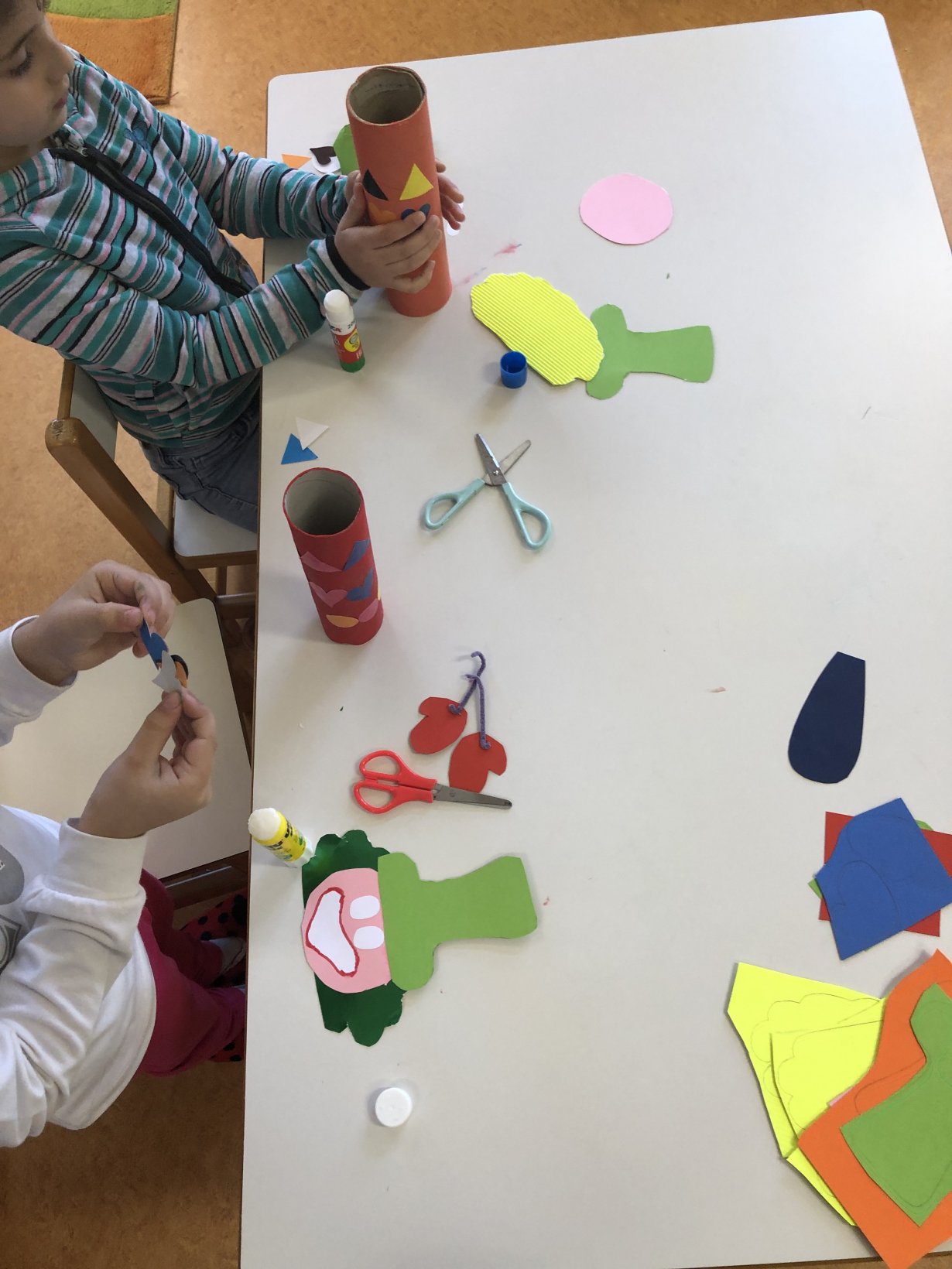 Κλείσαμε με δύο παιχνίδια. Το ένα επιτραπέζιο με τα πιόνια – παίκτες να προσπαθούν να φτάσουν στο τέρμα με το πλεονέκτημα να ξαναρίξουν το ζάρι αν βρουν σωστά μέσα στην αίθουσα αντικείμενο που να έχει το ίδιο σχήμα με αυτό από το κουτάκι στο οποίο βρίσκονται. Το δεύτερο ήταν ένα κουτί που λάτρευε να τρώει σχήματα με συγκεκριμένο όμως διαιτολόγιο. Προσοχή! Αν η δίαιτά του χαλάσει, τα σχήματα όλα έξω θα πετάξει!