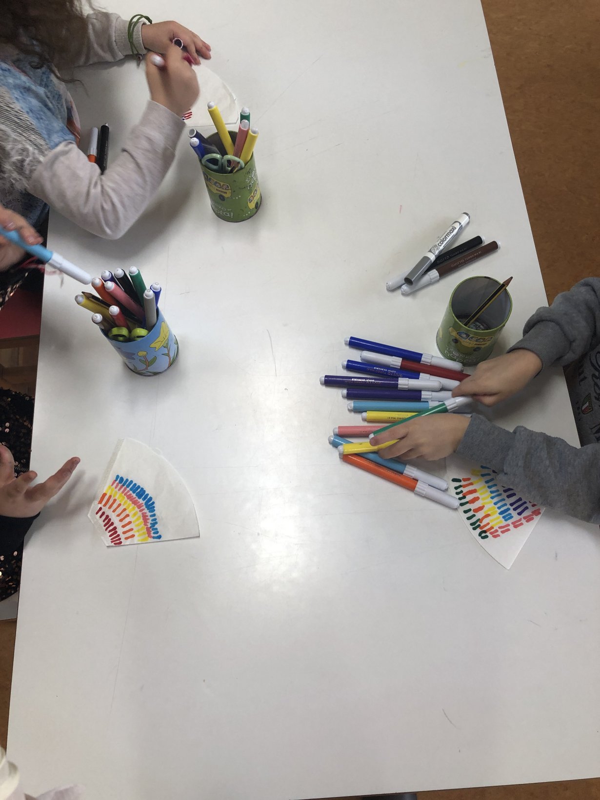 Διαβάσαμε την ιστορία του Αρλεκίνου αφού βάλαμε πρώτα τις εικόνες σε σωστή χρονολογική σειρά. Τα παιδιά συνεργάστηκαν, διαφώνησαν, συμφώνησαν και τελικά κατέληξαν σε μια σειρά. Στην συνέχεια, κατασκευάσαμε το καπέλο και τους πολύχρωμους ρόμβους του.
