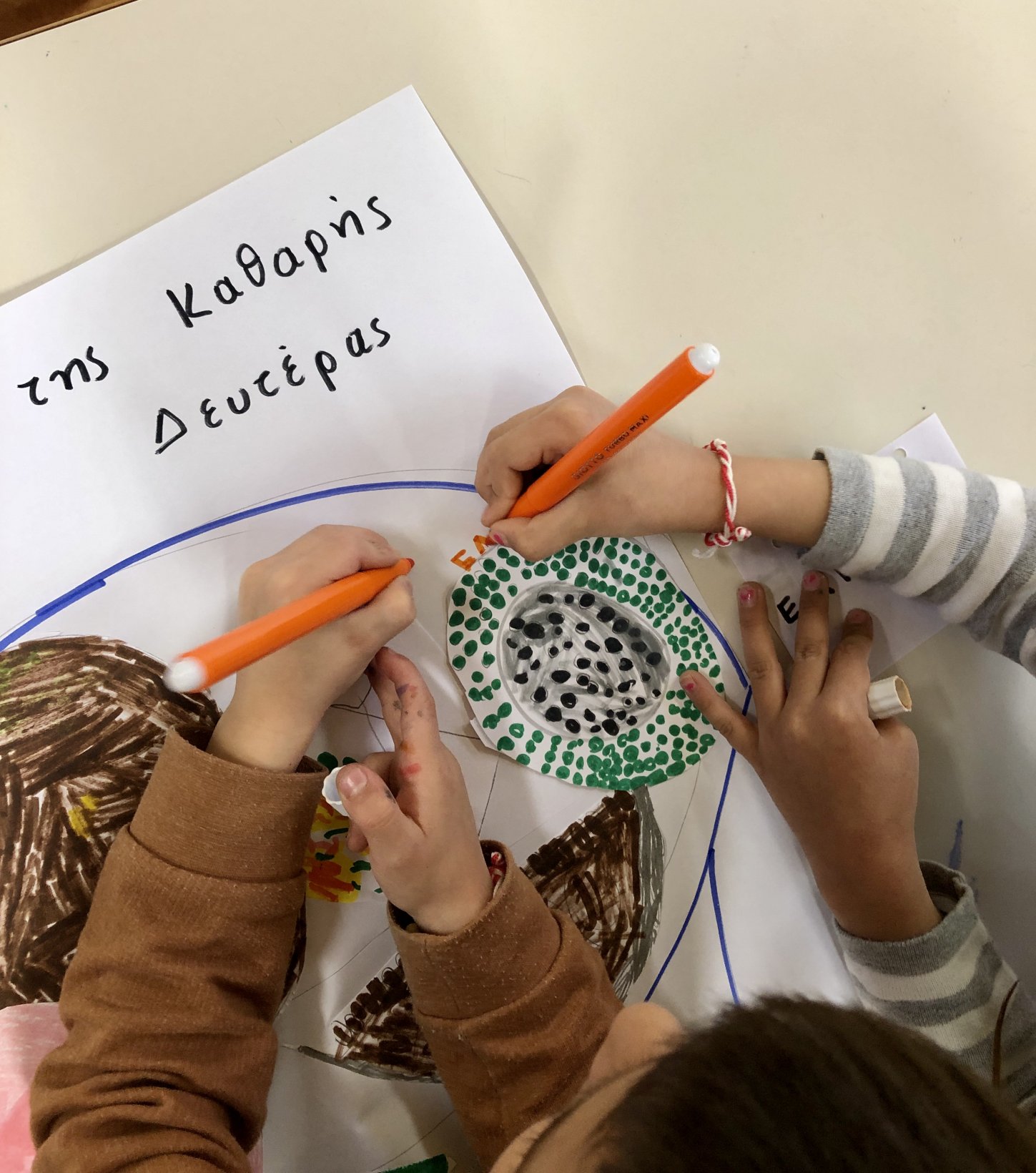 Στην ώρα των Αγγλικών έφτιαξαν με την κ. Κωνσταντίνα χαρταετούς. Μιλήσαμε για τη Σαρακοστή που ξεκινάει την Καθαρά Δευτέρα και φτιάξαμε ομαδικά την κυρά Σαρακοστή.