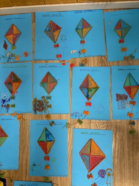 Η Καθαρά Δευτέρα σηματοδότησε την έναρξη της Σαρακοστής και την προετοιμασία μας για τον εορτασμό του Πάσχα! Αφού πετάξαμε το χαρταετό, μιλήσαμε για την κυρά Σαρακοστή, μια κυρία με πολλά νηστίσιμα φαγητά στην ποδιά της και 7 πόδια για τις 7 εβδομάδες μέχρι την Ανάσταση. Η κυρά Σαρακοστή ήρθε και στην τάξη μας, τόσο χάρτινη όσο και από ζύμη, όπως φτιαχνόταν παραδοσιακά!