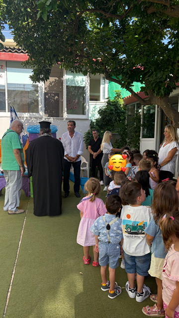 Ο αγιασμός τελέστηκε από τον ιερέα της ενοριας μασ, ευλόγησε τα παιδιά και τους εκπαιδευτικούς, δίνοντας τις δικές του ευχές για πρόοδο, υγεία και δημιουργικότητα. Οι εκπαιδευτικοί ήμασταν όλοι εκεί, καλωσορίζοντας τους μαθητές μας, ιδιαίτερα τα «προνηπιάκια» και τονίζοντας τη σημασία της συνεργασίας, του σεβασμού και της προσπάθειας για μια γόνιμη χρονιά.