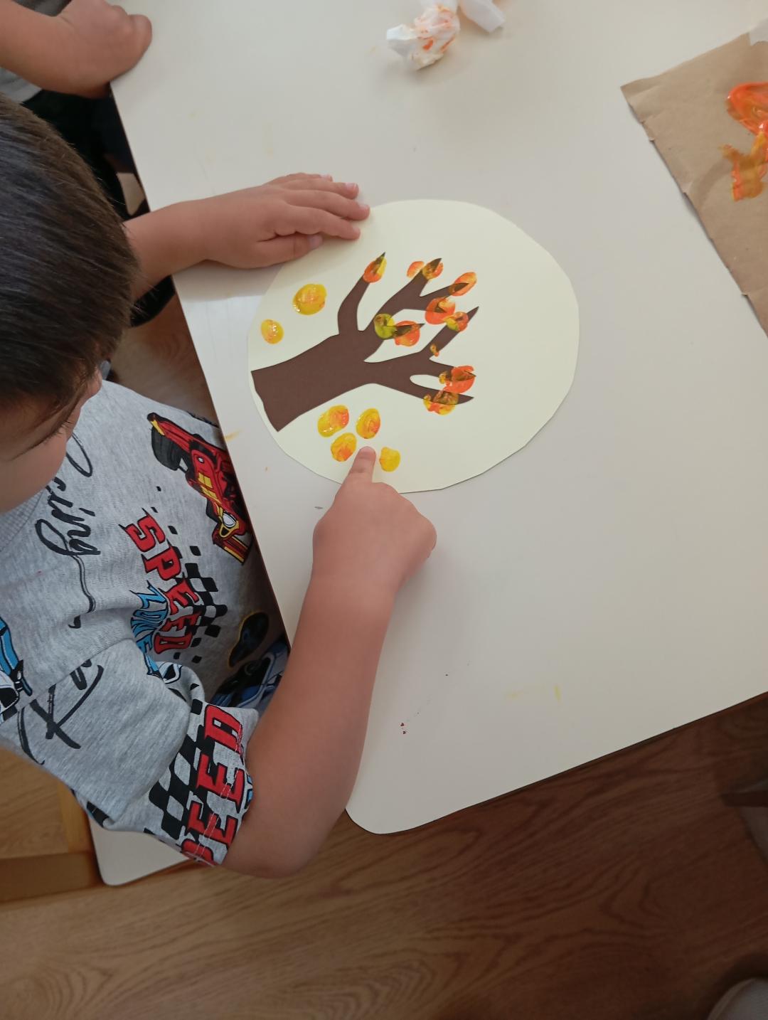 Ξεκινήσαμε με messy play με τα υλικά του Φθινοπώρου που έφεραν τα παιδιά από το σπίτι