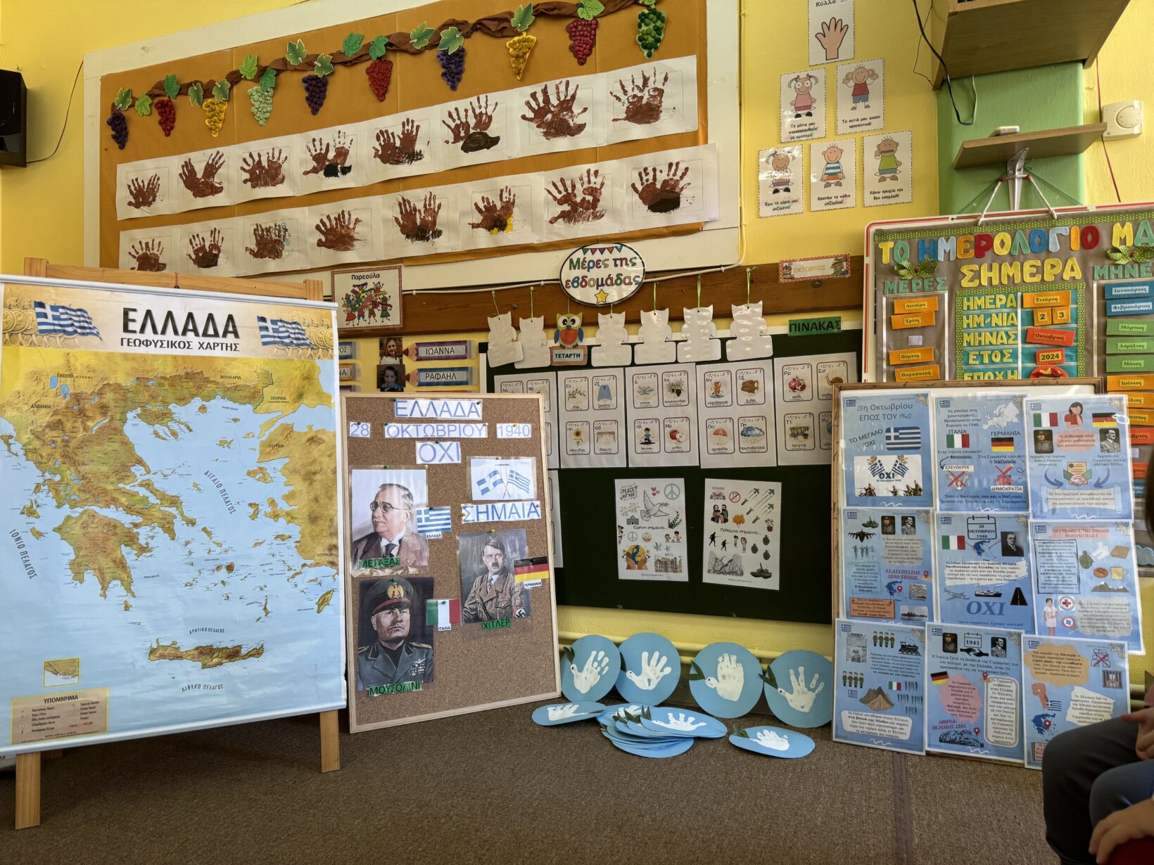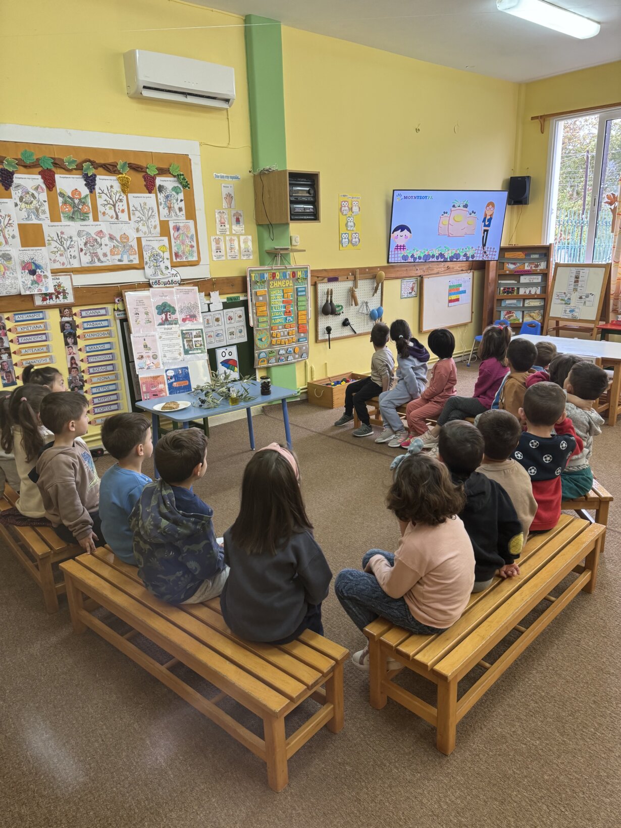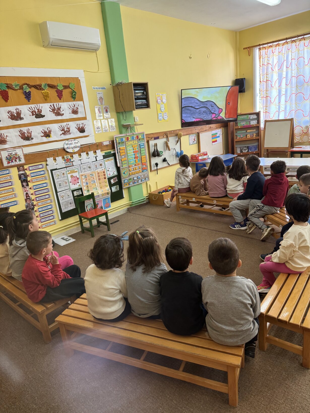 Τα παιδιά παρατήρησαν και φωτογραφήθηκαν στην υπέροχη τοιχογραφία του σχολείου που σχετίζεται με τα δικαιώματα του παιδιού, μετά είδαμε πλήθος εικόνων από το βιβλίο της Unicef “Μια ζωή σαν τη δική μου”, για το πώς ζούν τα παιδιά σ’όλο τον κόσμο, ενώ στη συνέχεια ζητήθηκε από τα παιδιά στην ολομέλεια, ύστερα από τη συζήτηση και τις εικόνες που είδαν από το βιβλίο, να πουν ορισμένα δικαιώματα που έχουν τα παιδιά.
