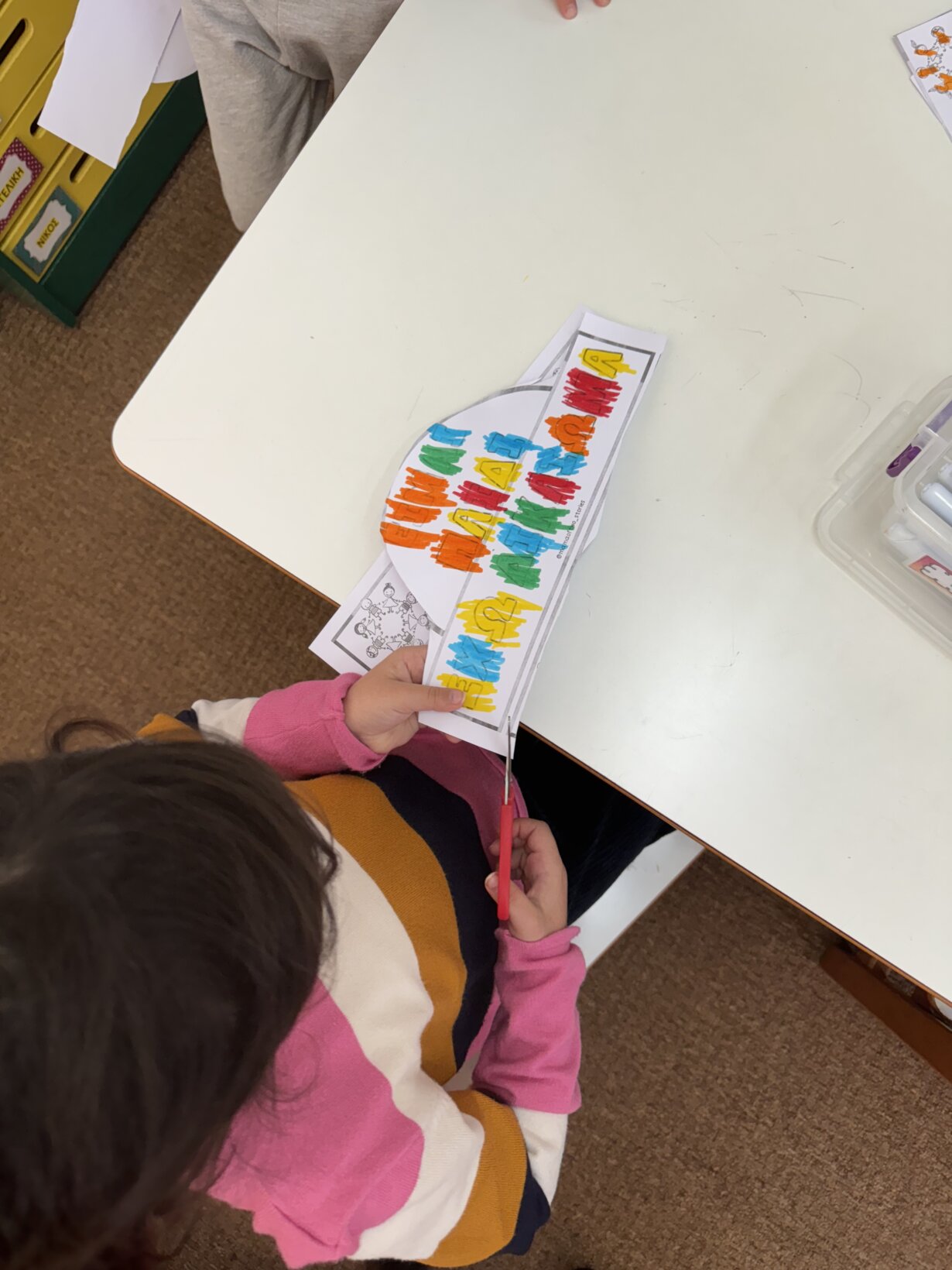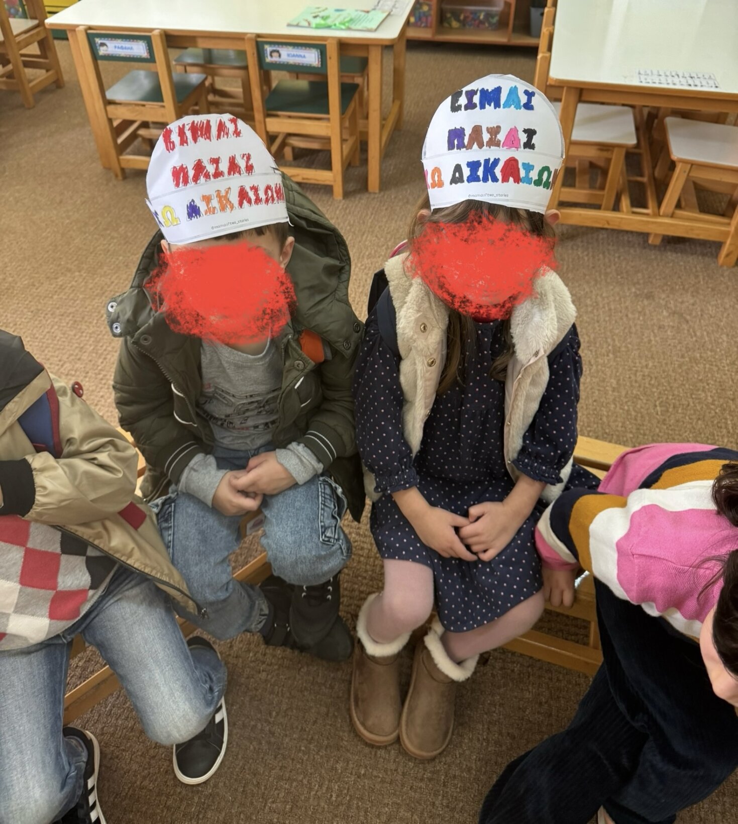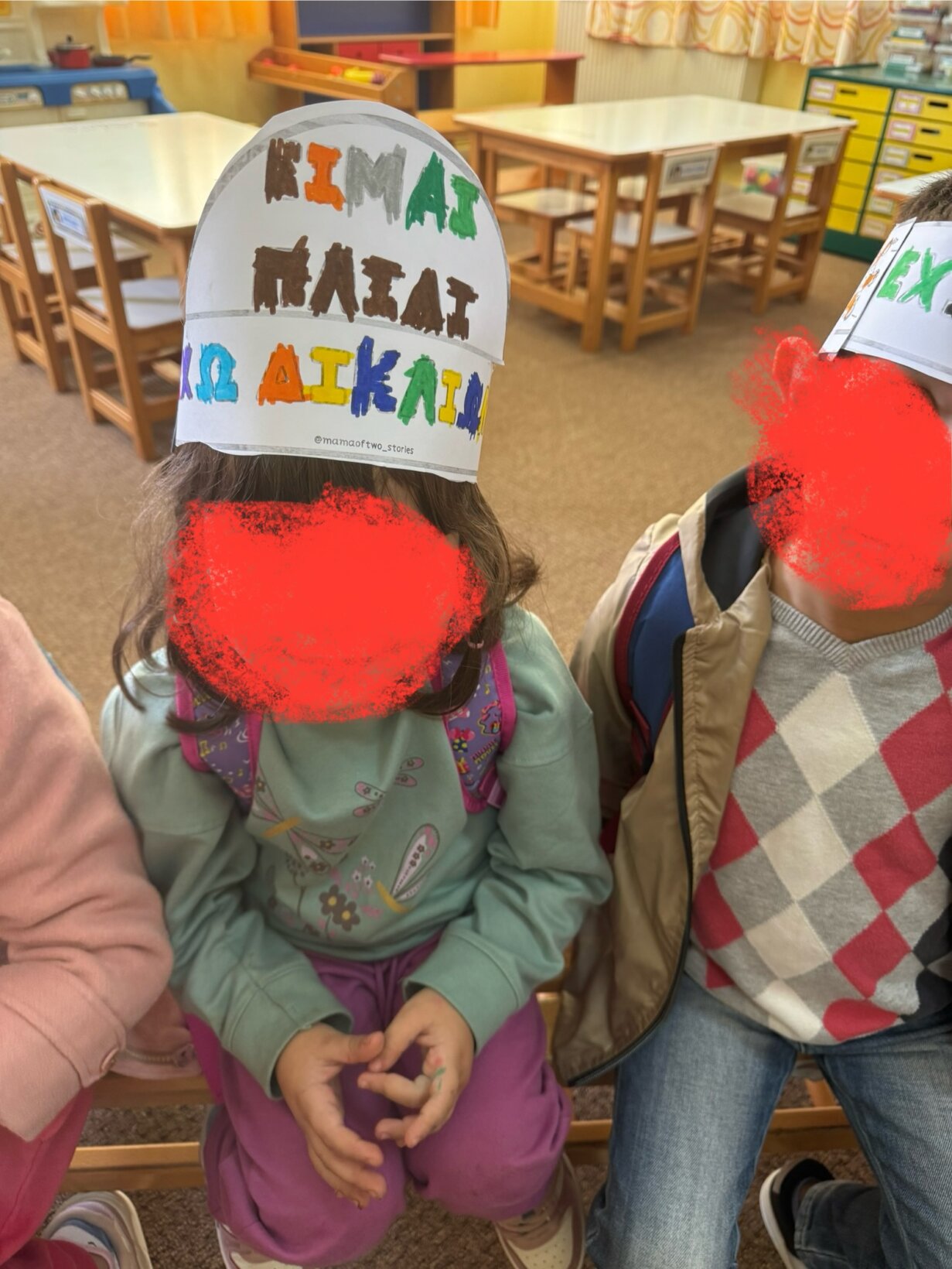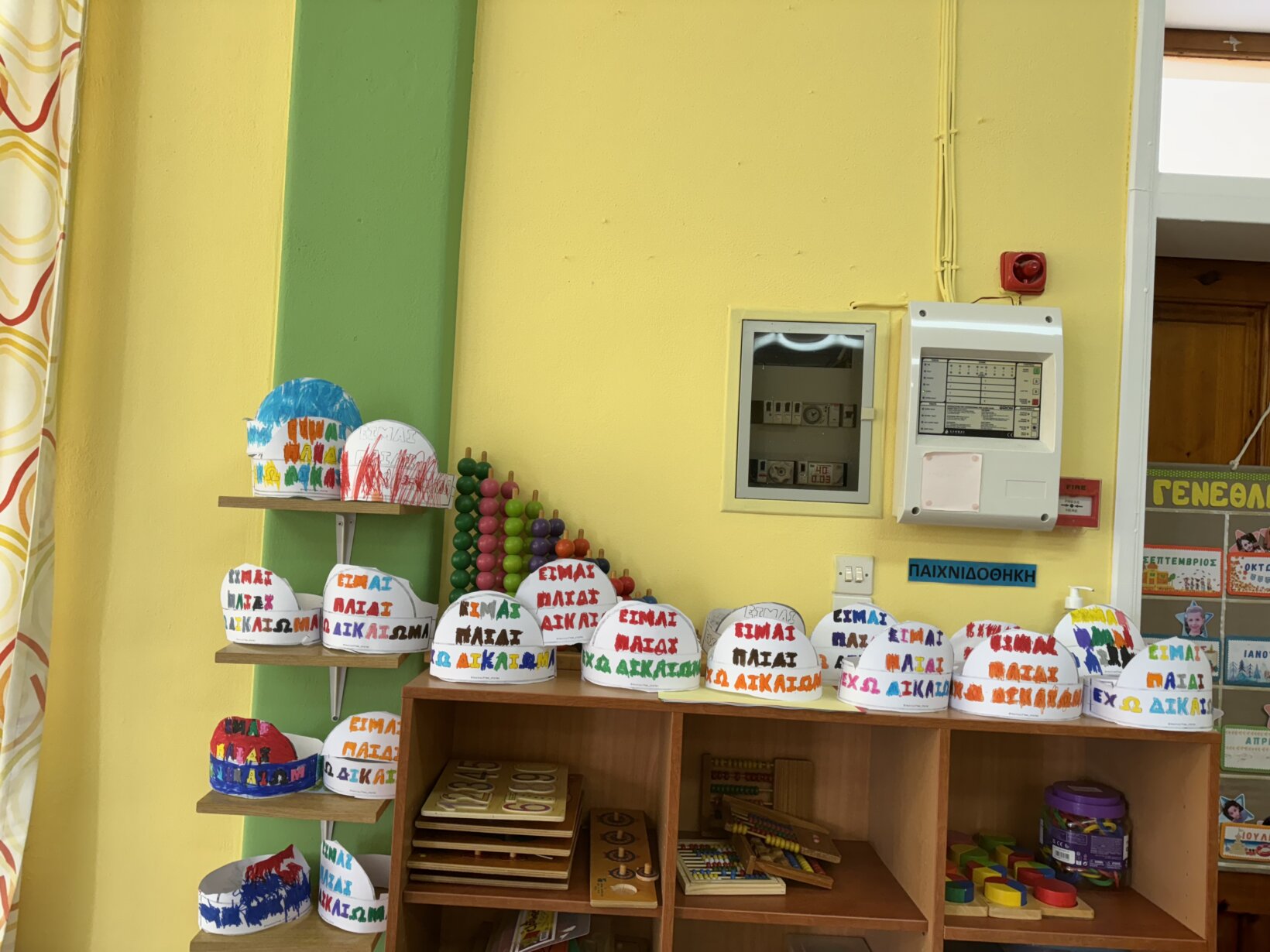 Τέλος, κάναμε μια χειροτεχνία-καπέλο σχετικό με το θέμα που ασχοληθήκαμε, τα παιδιά ζωγράφισαν το καπέλο όπως επιθυμούσαν αφήνοντας την δημιοργικότητά τους και τη φαντασία τους ελεύθερη, ενώ εξασκήθηκαν στην λεπτή κινητικότητα, αφού έκοψαν με το ψαλίδι!!!