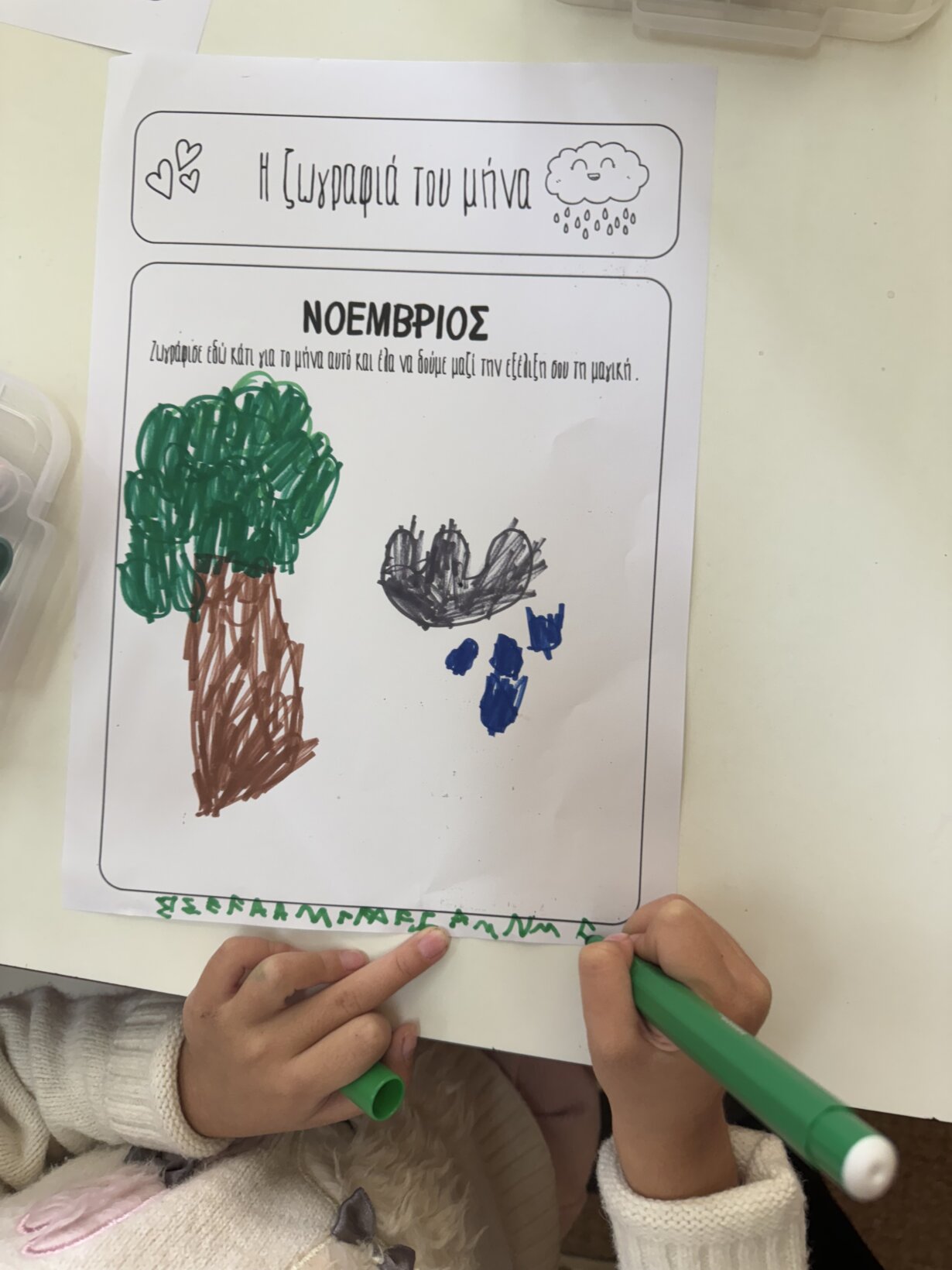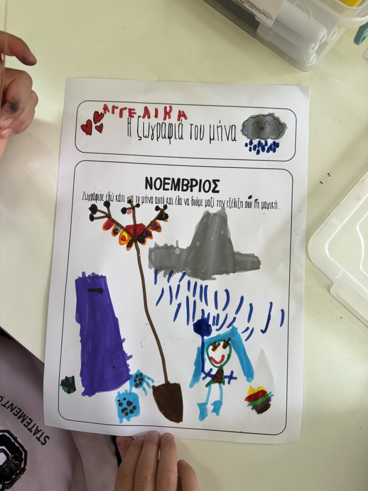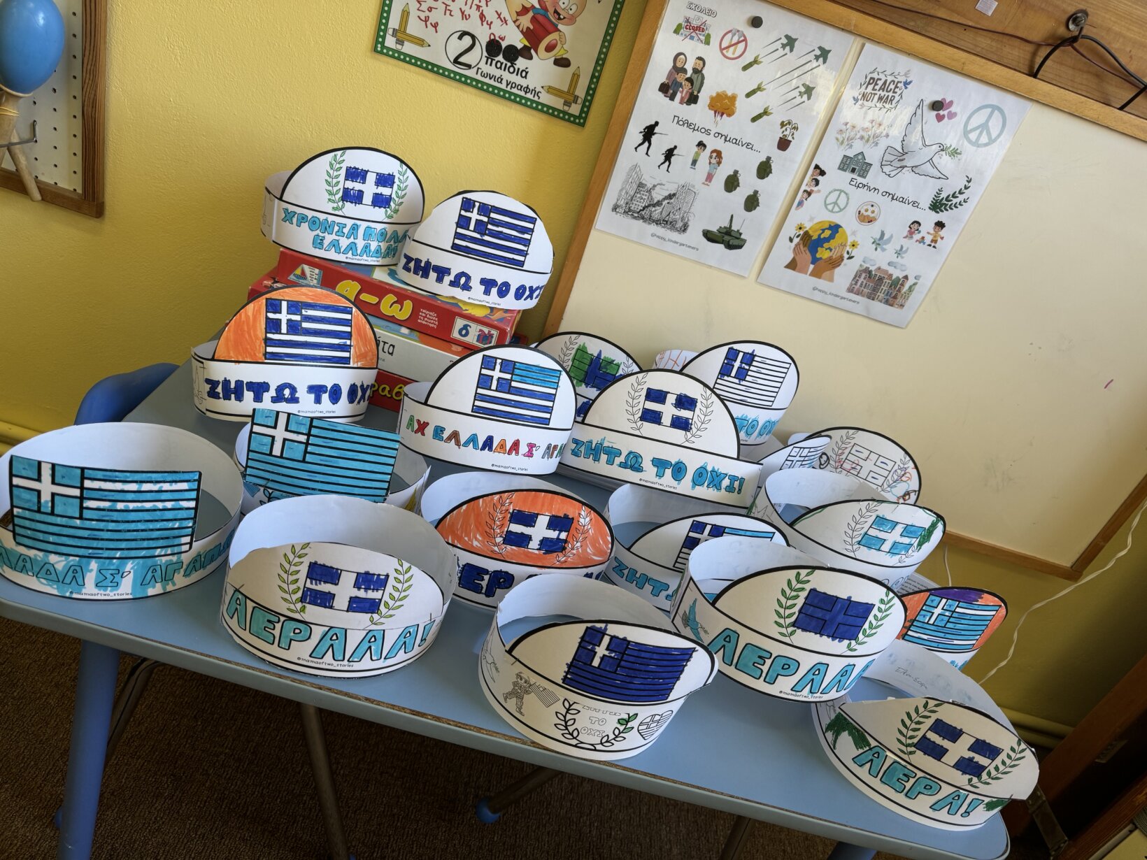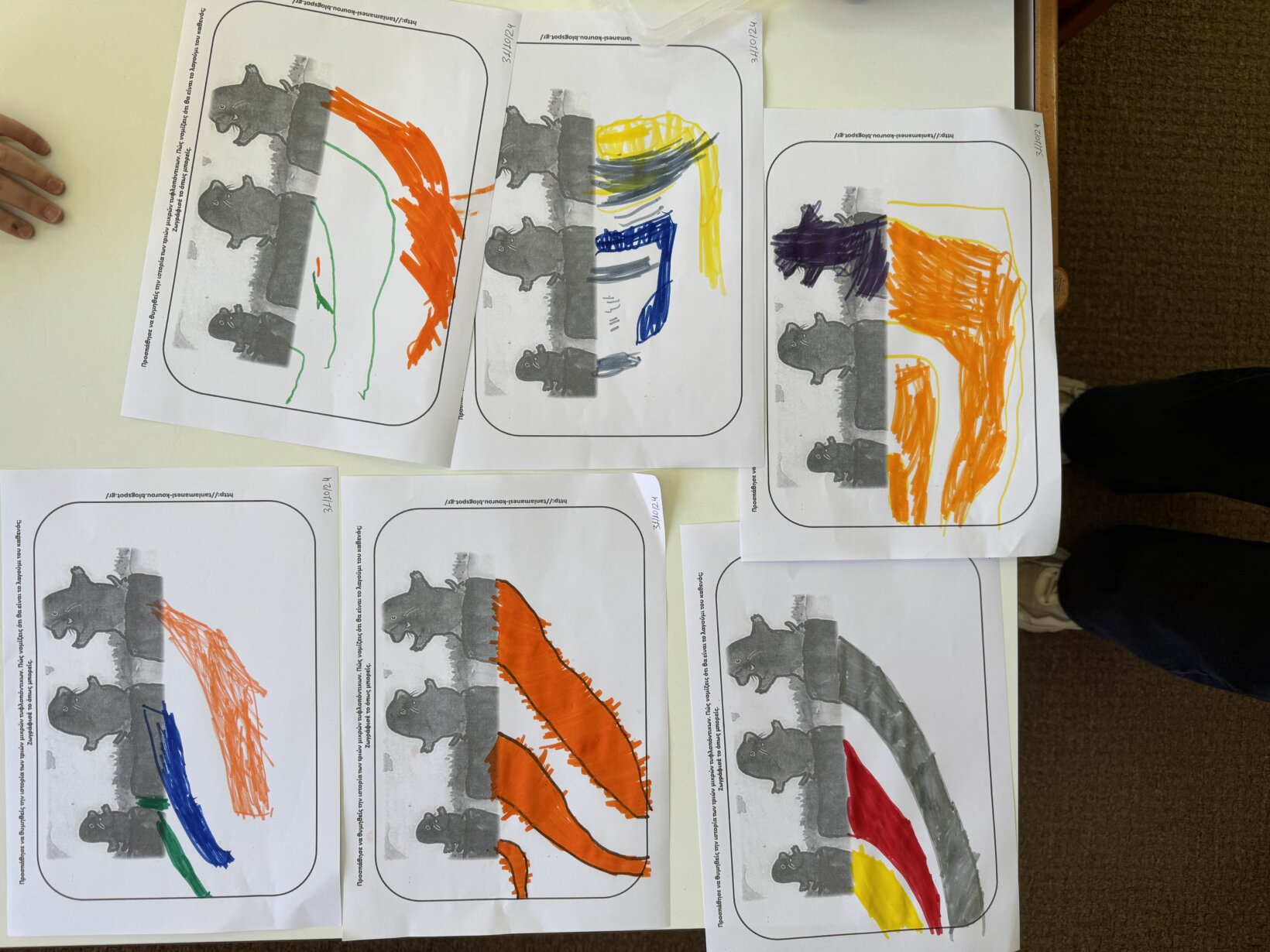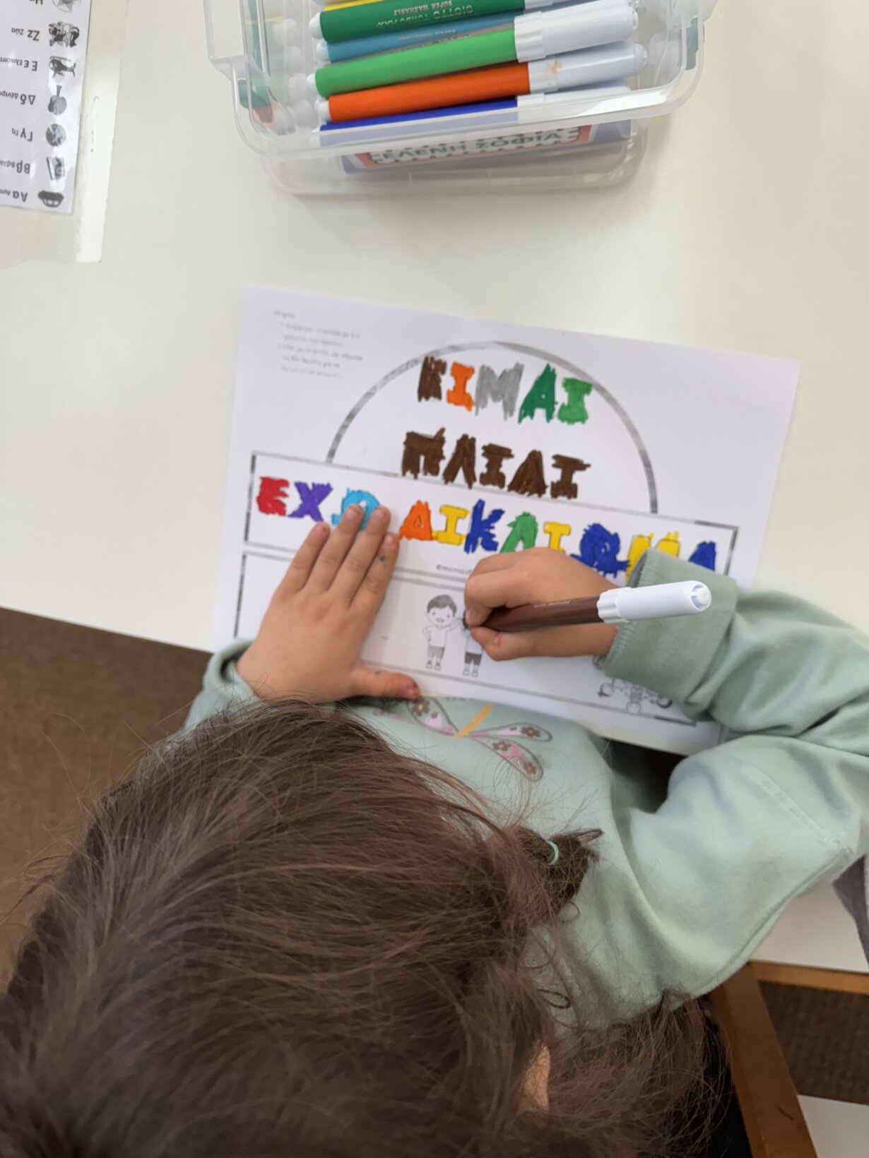 Τέλος, κάναμε μια χειροτεχνία-καπέλο σχετικό με το θέμα που ασχοληθήκαμε, τα παιδιά ζωγράφισαν το καπέλο όπως επιθυμούσαν αφήνοντας την δημιοργικότητά τους και τη φαντασία τους ελεύθερη, ενώ εξασκήθηκαν στην λεπτή κινητικότητα, αφού έκοψαν με το ψαλίδι!!!