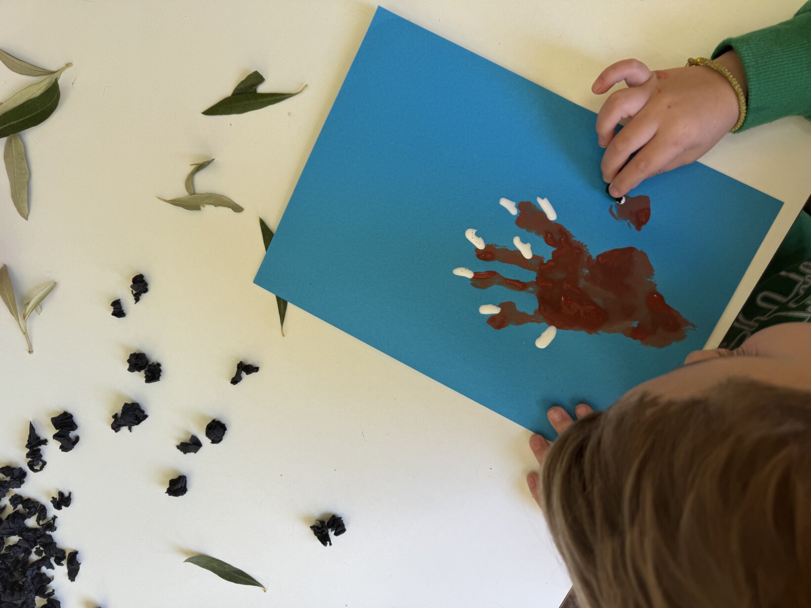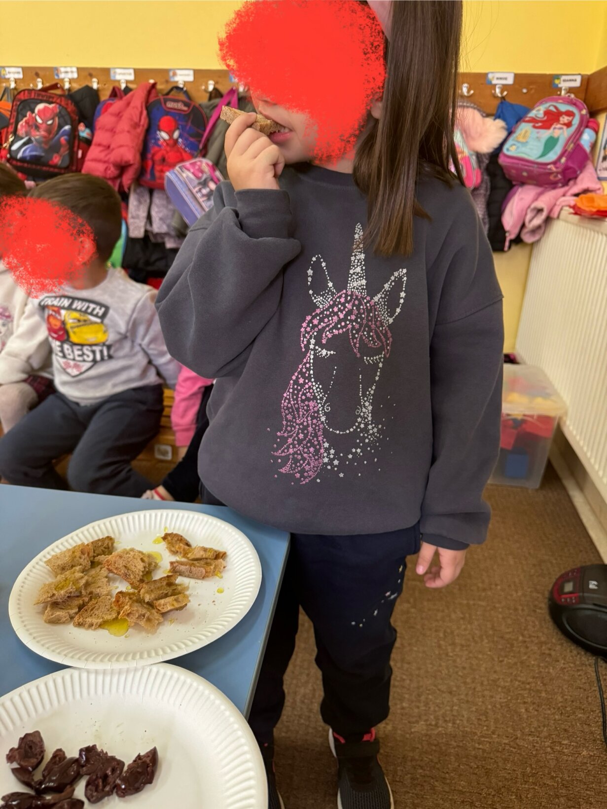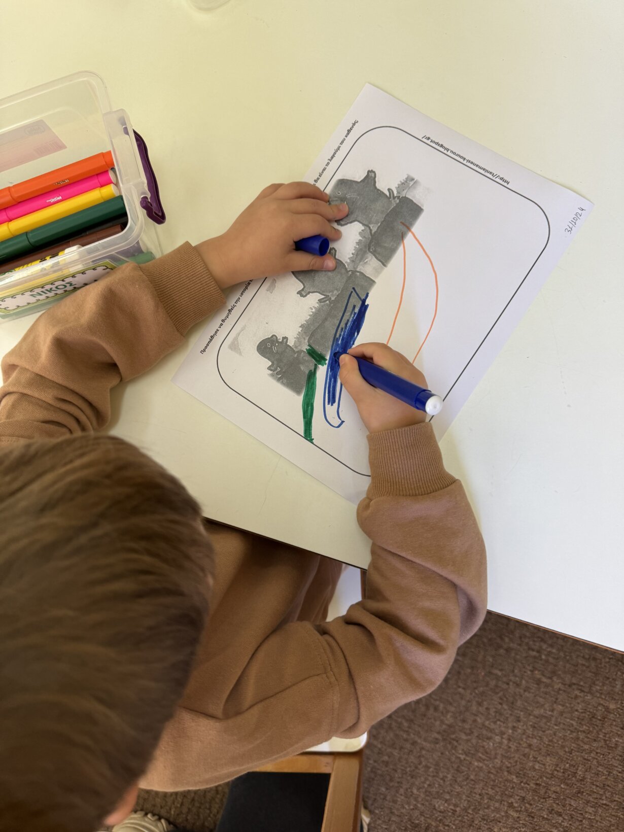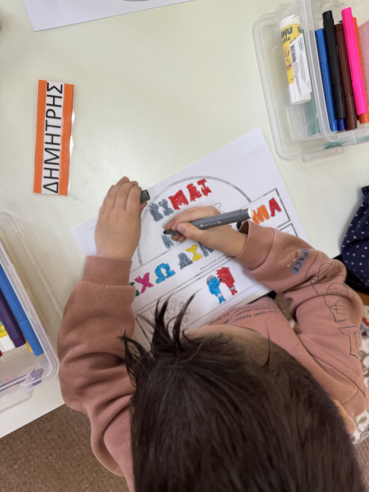 Τέλος, κάναμε μια χειροτεχνία-καπέλο σχετικό με το θέμα που ασχοληθήκαμε, τα παιδιά ζωγράφισαν το καπέλο όπως επιθυμούσαν αφήνοντας την δημιοργικότητά τους και τη φαντασία τους ελεύθερη, ενώ εξασκήθηκαν στην λεπτή κινητικότητα, αφού έκοψαν με το ψαλίδι!!!