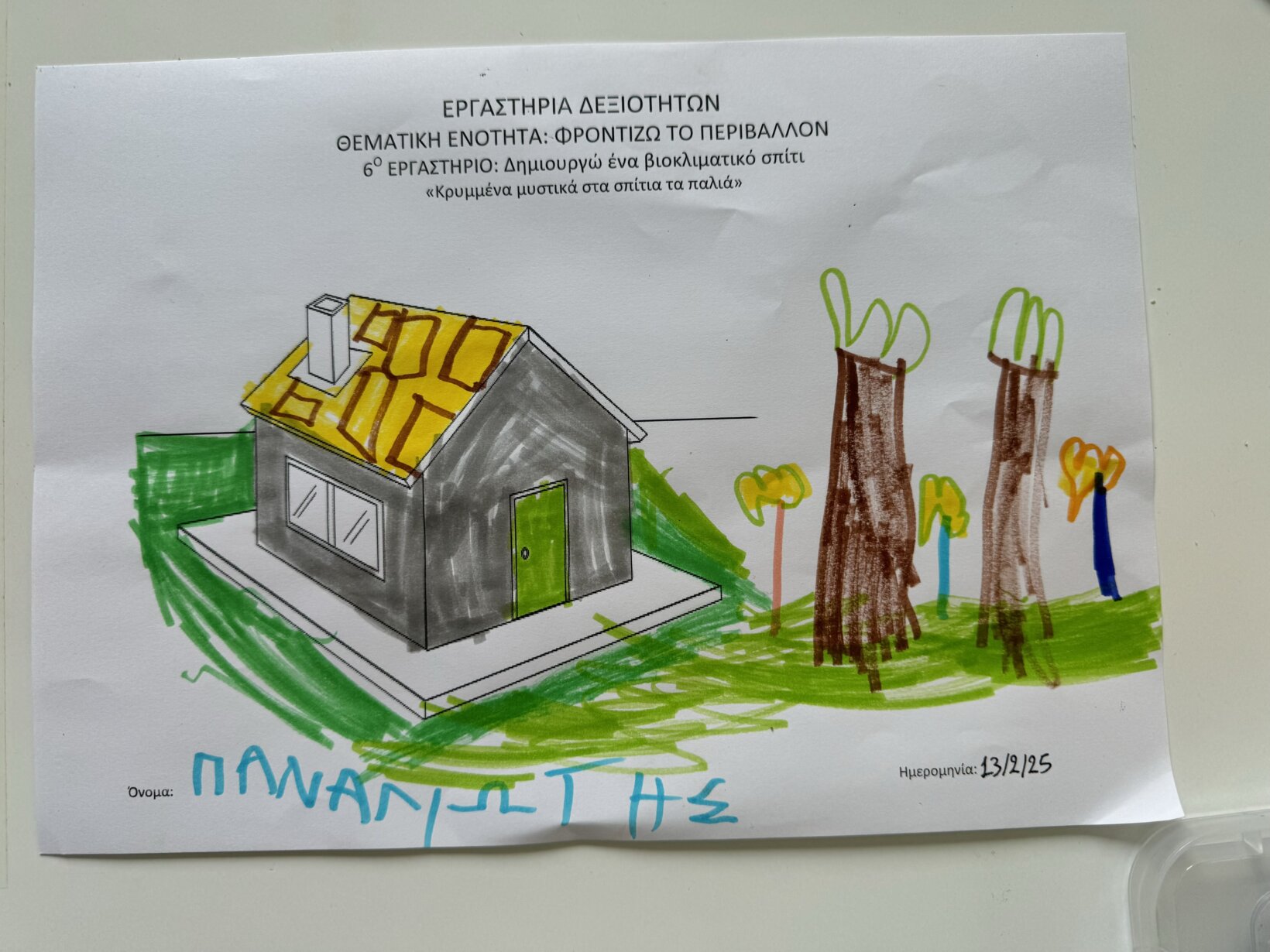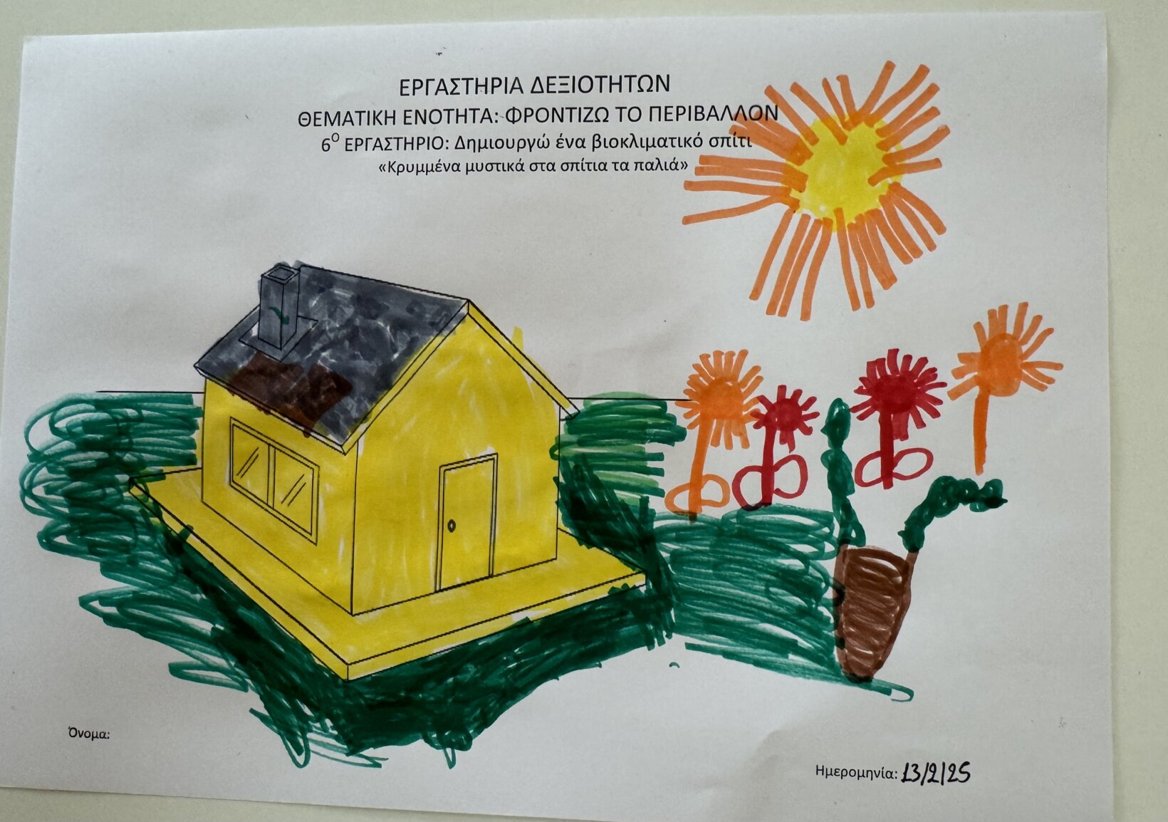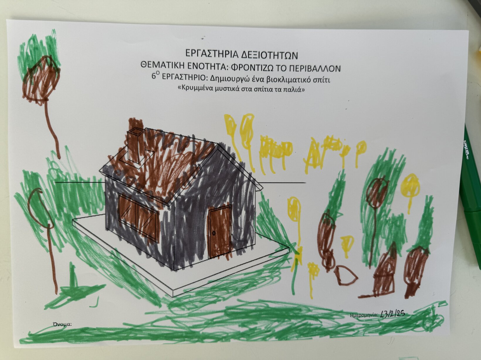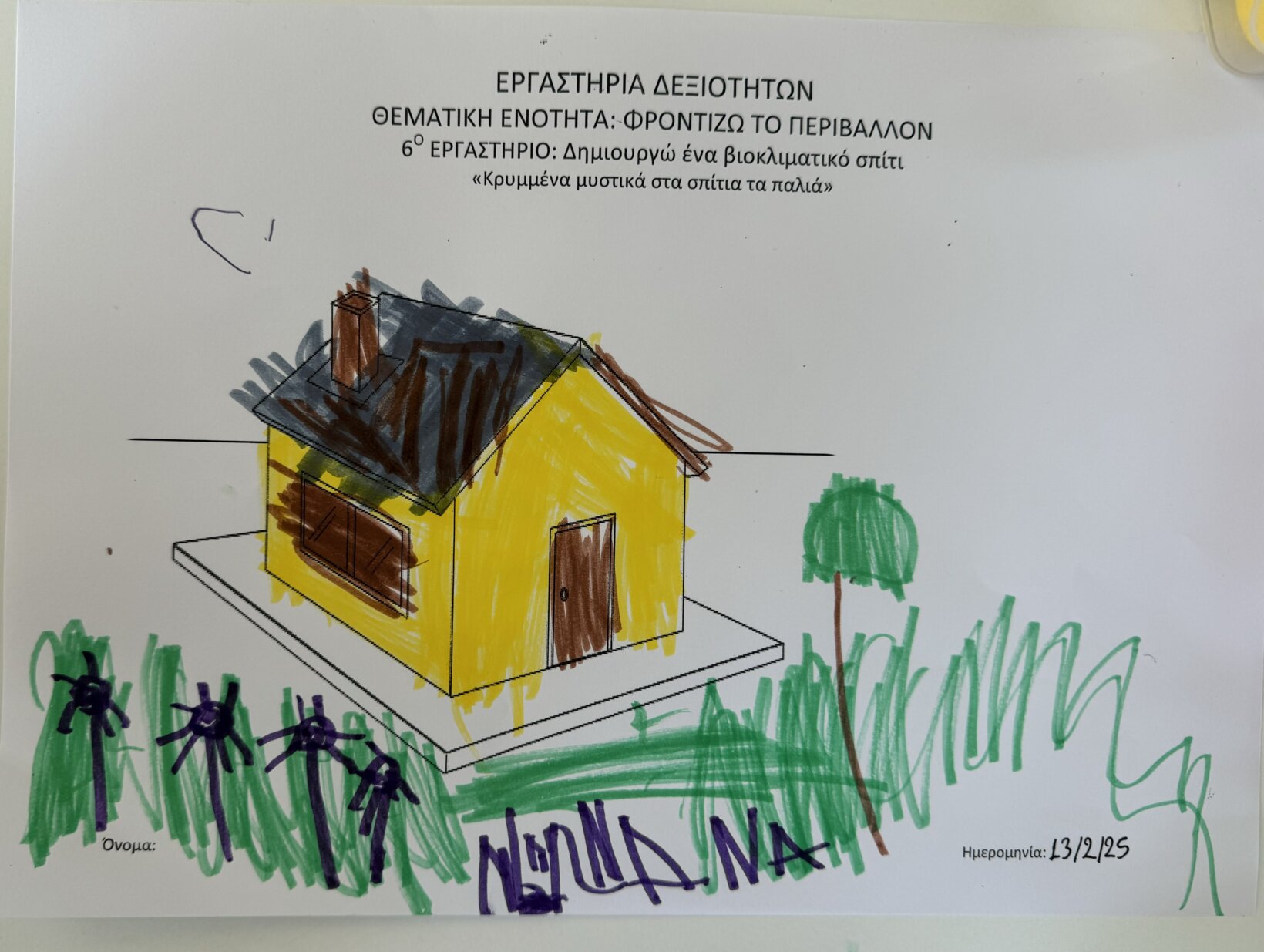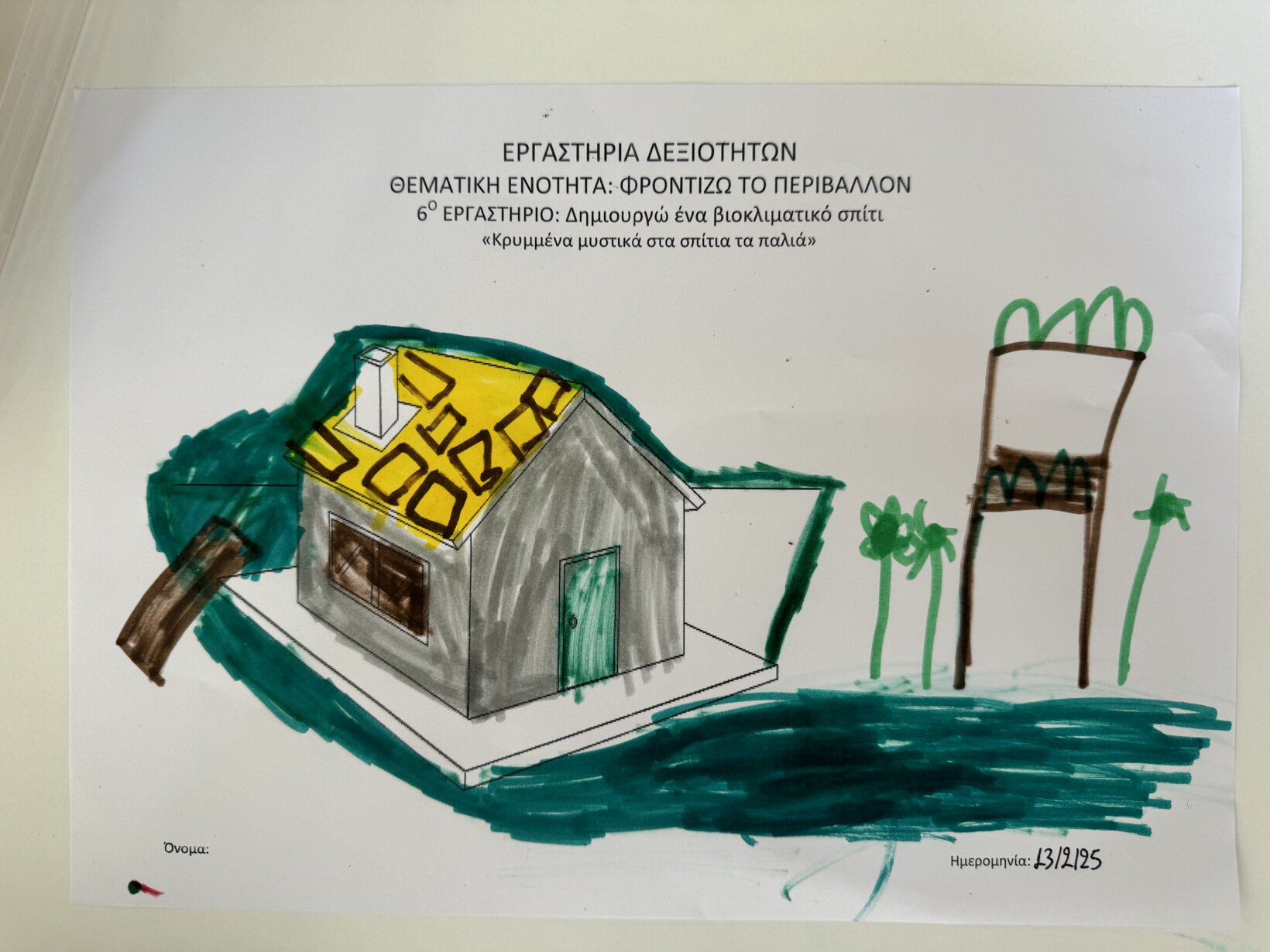 Τα παιδιά μέσω της ζωγραφικής τους έδειξαν πως κατανόησαν τα περί βιοκλιματικής σχεδίασης και κατασκευής  ενός σπιτιού, αφού ζωγράφισαν σπίτια που τα περιβάλλει η φύση, αλλά και σπίτια αναβαθμισμένα ενεργειακά με τη χρήση φωτοβολταϊκών συστημάτων στη σκεπή τους!