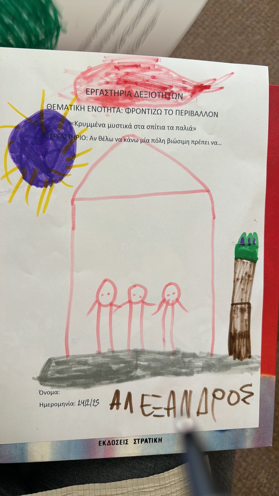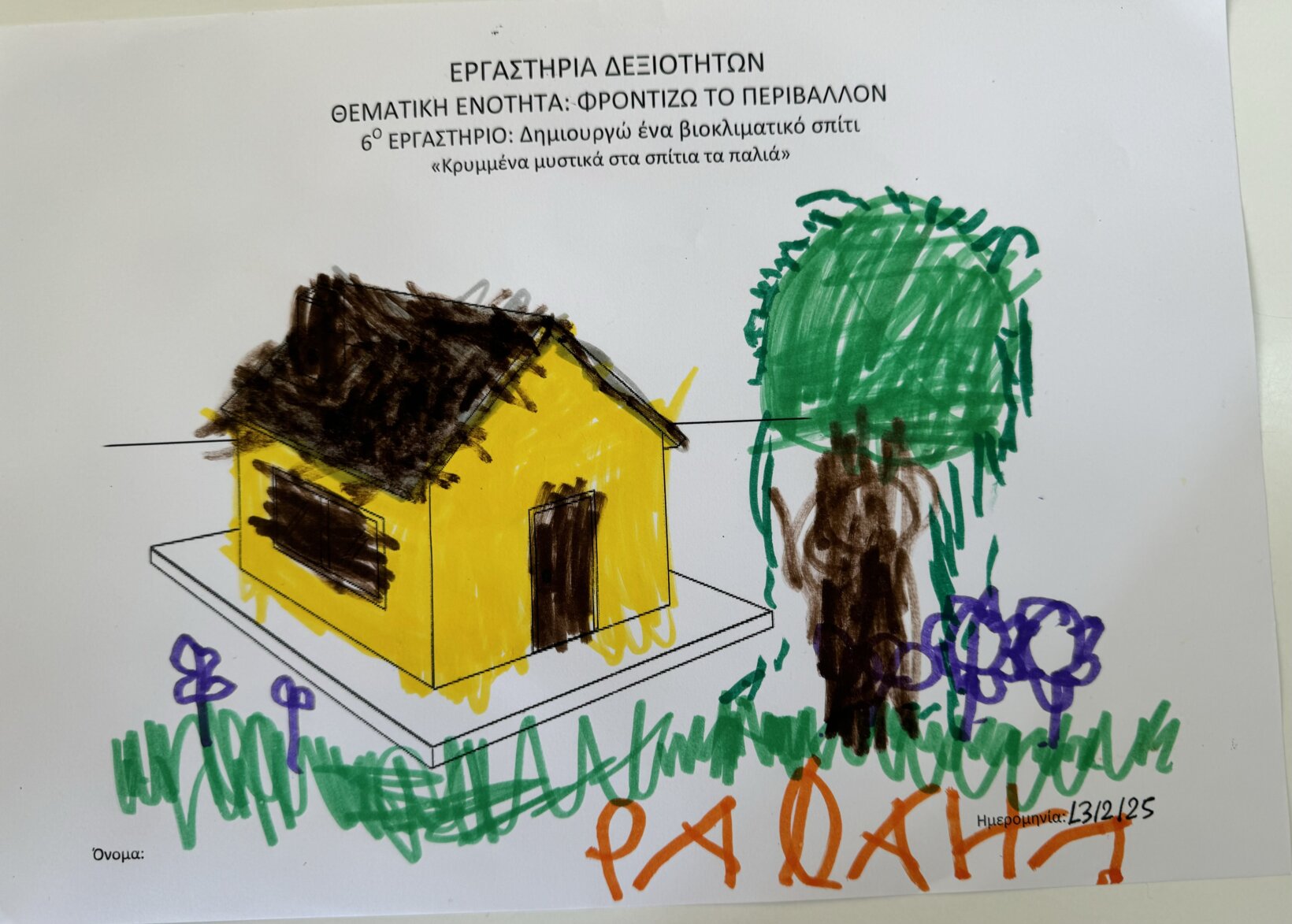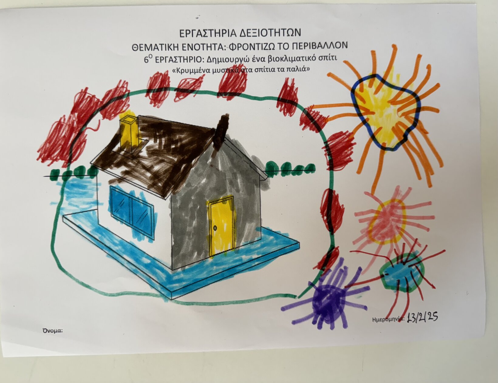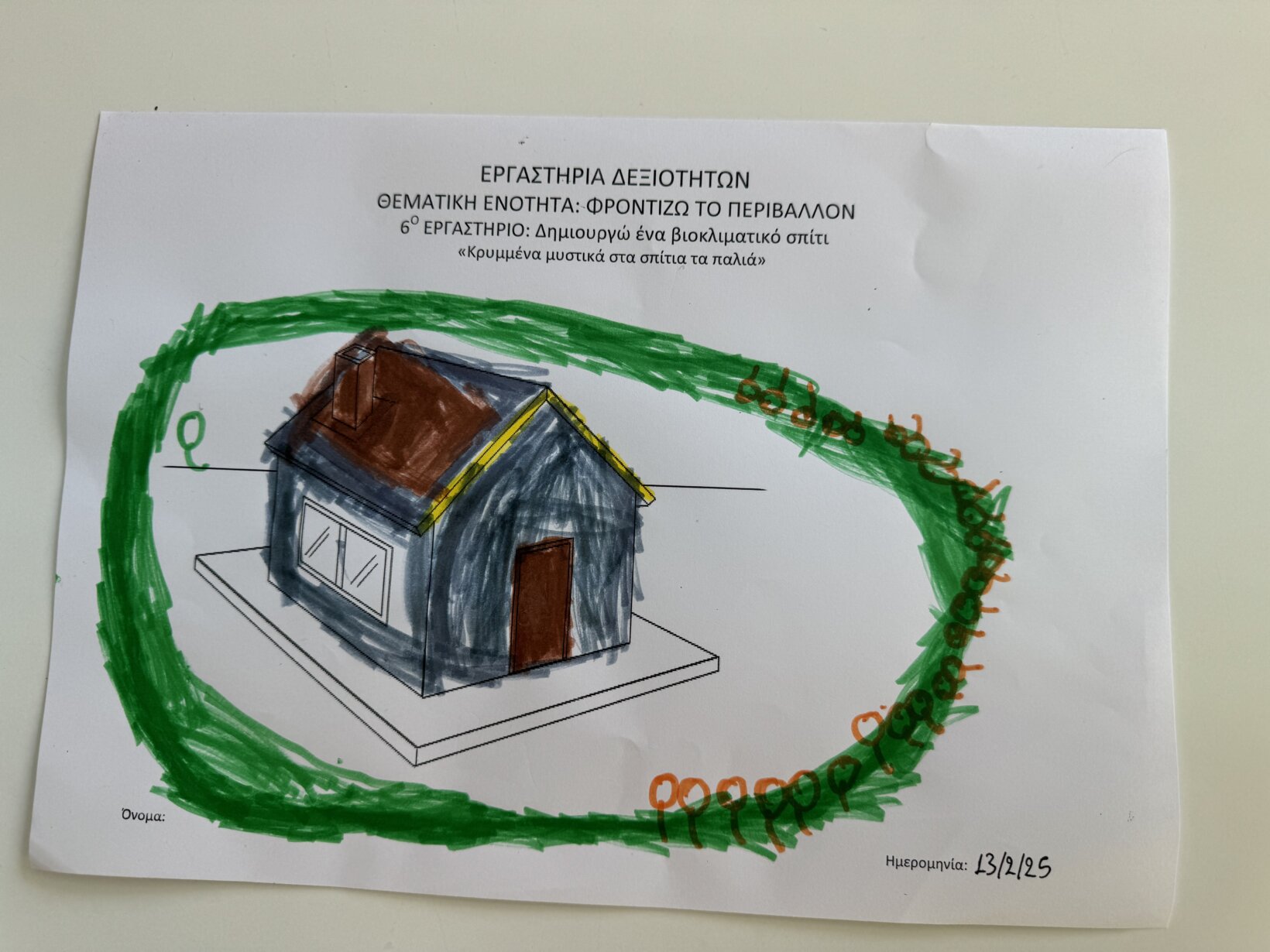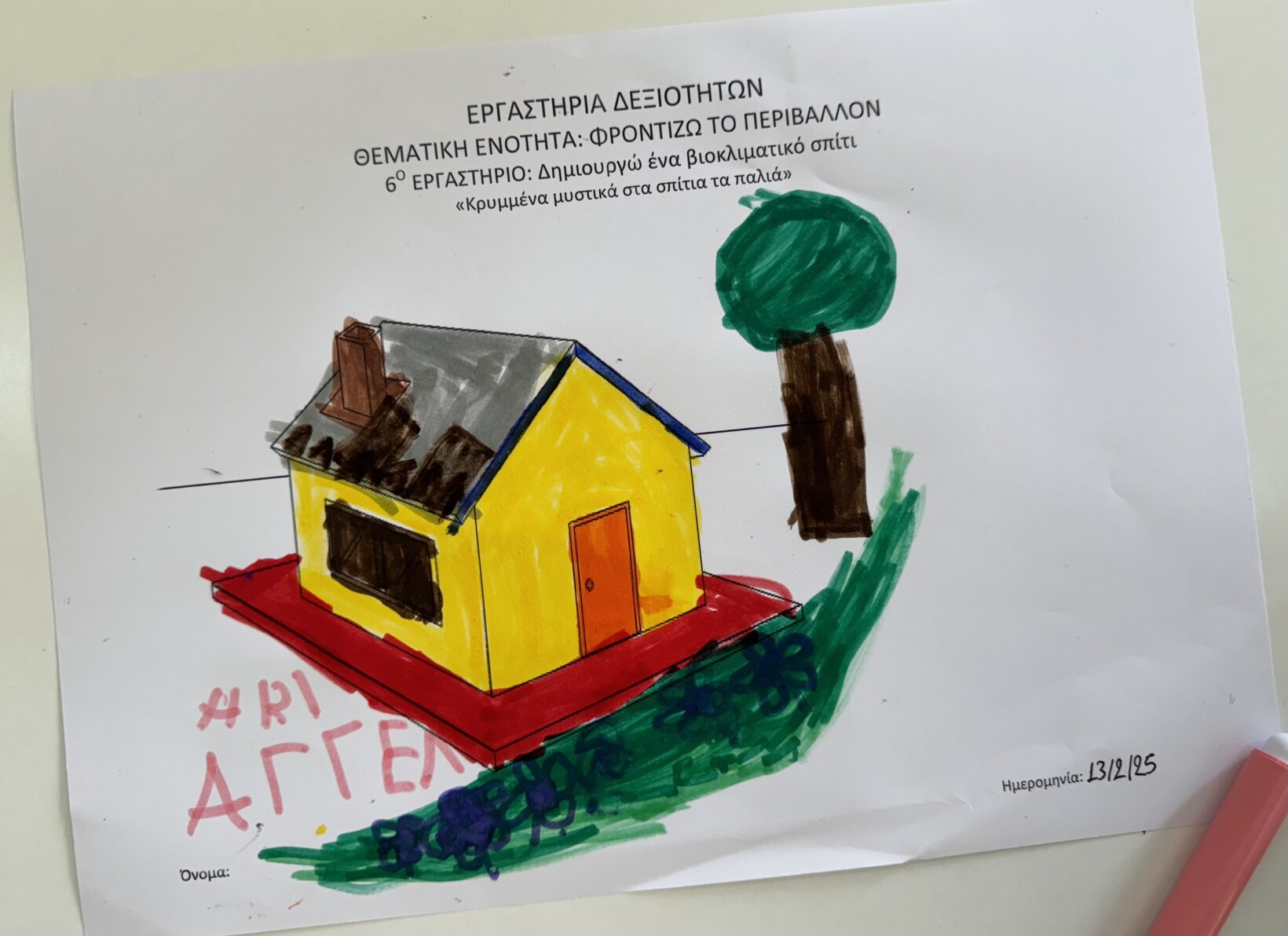 Τα παιδιά μέσω της ζωγραφικής τους έδειξαν πως κατανόησαν τα περί βιοκλιματικής σχεδίασης και κατασκευής  ενός σπιτιού, αφού ζωγράφισαν σπίτια που τα περιβάλλει η φύση, αλλά και σπίτια αναβαθμισμένα ενεργειακά με τη χρήση φωτοβολταϊκών συστημάτων στη σκεπή τους!