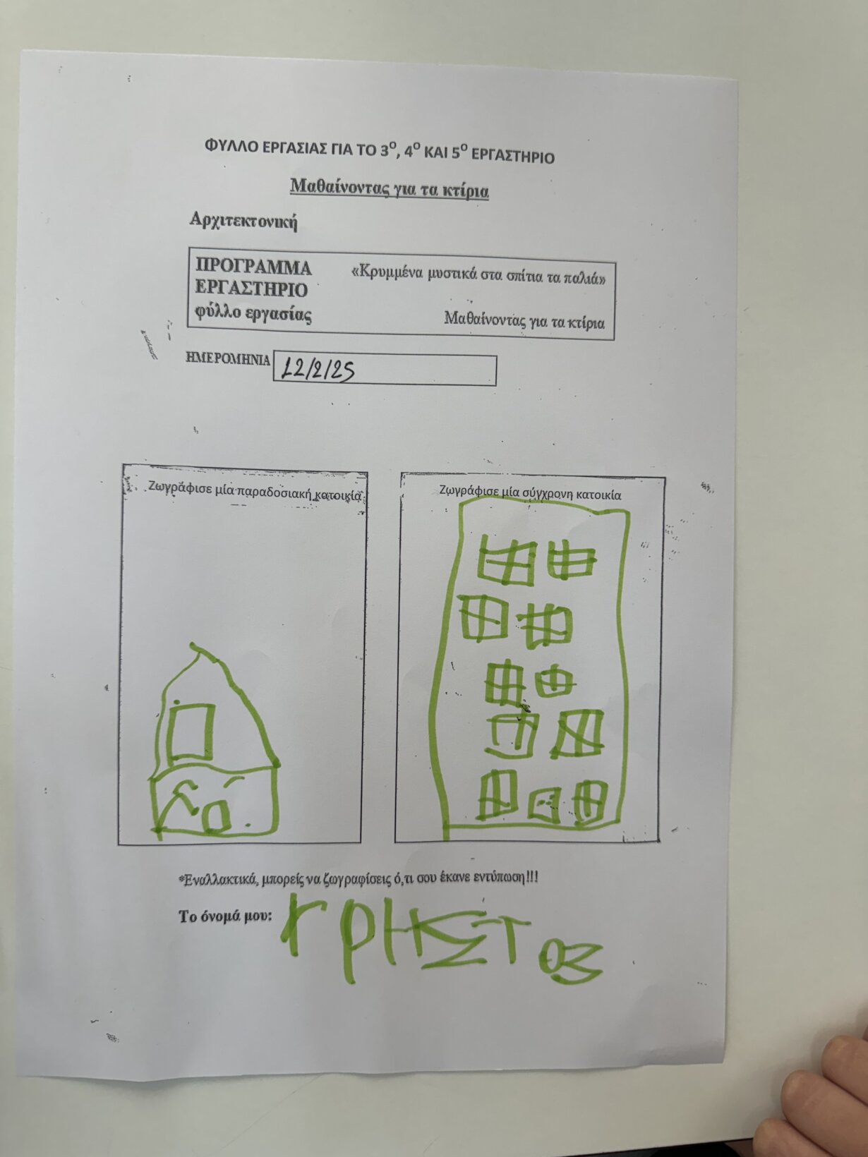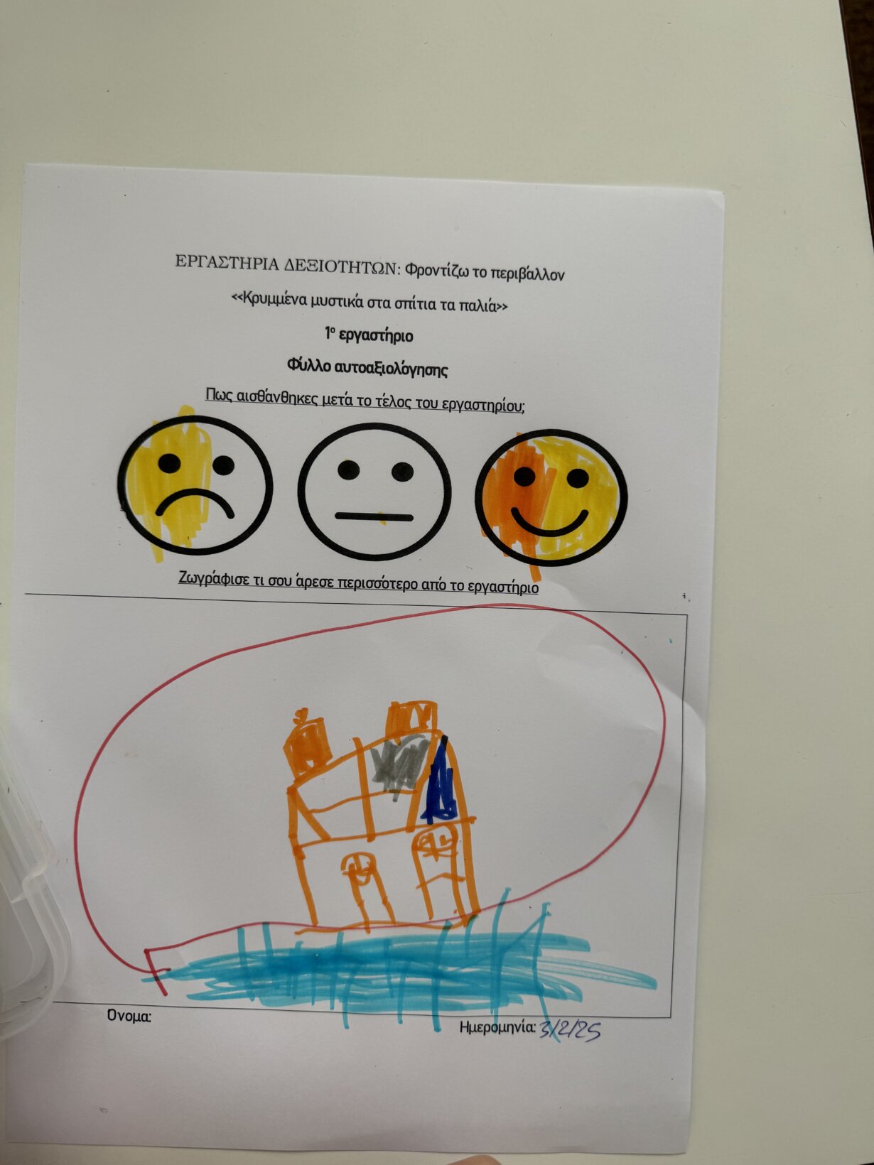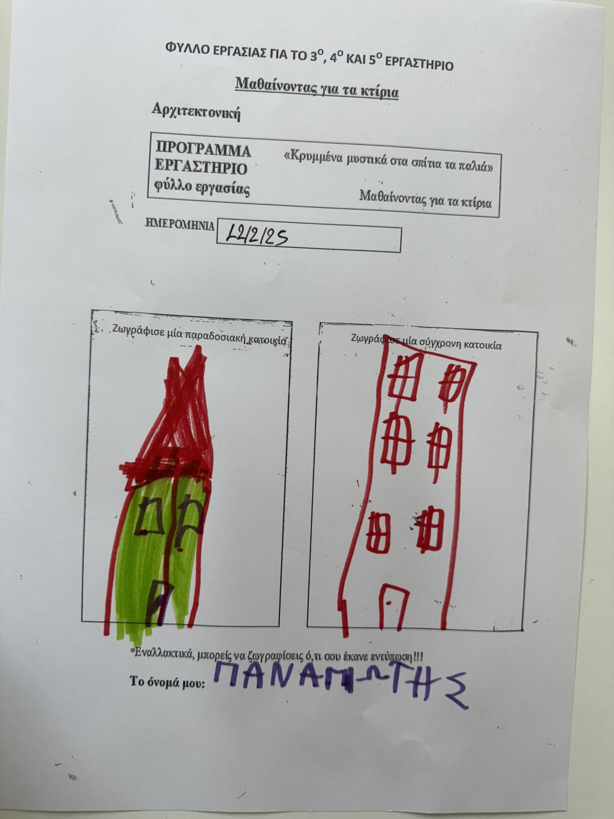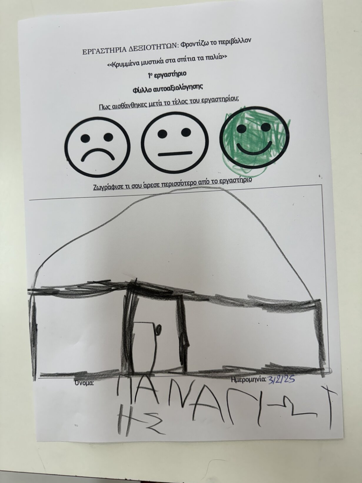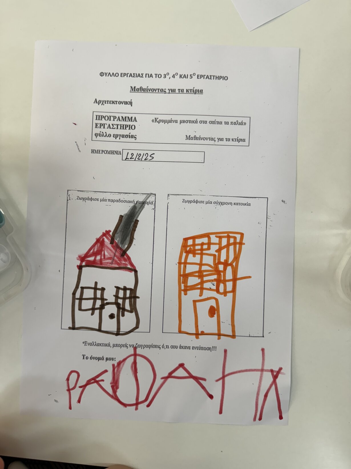Τα παιδιά μέσω της ζωγραφικής τους έδειξαν πως κατανόησαν τα περί βιοκλιματικής σχεδίασης και κατασκευής  ενός σπιτιού, αφού ζωγράφισαν σπίτια που τα περιβάλλει η φύση, αλλά και σπίτια αναβαθμισμένα ενεργειακά με τη χρήση φωτοβολταϊκών συστημάτων στη σκεπή τους!