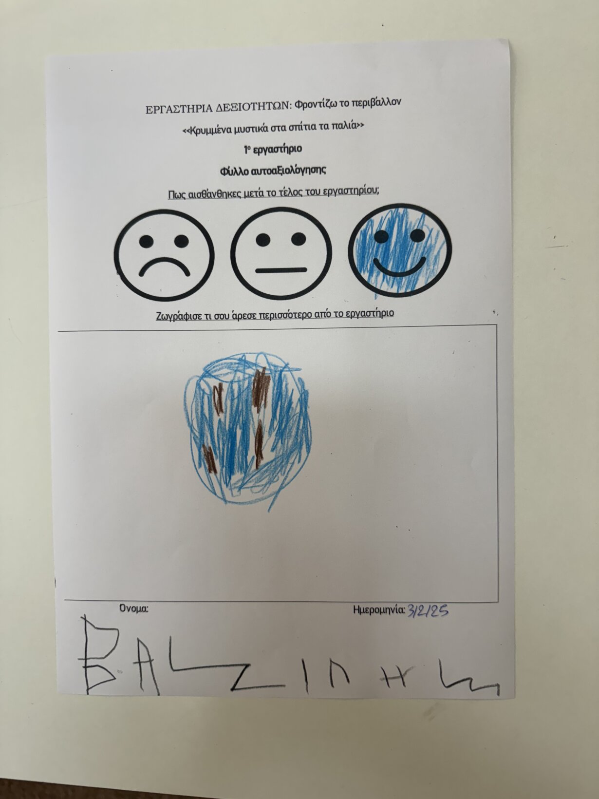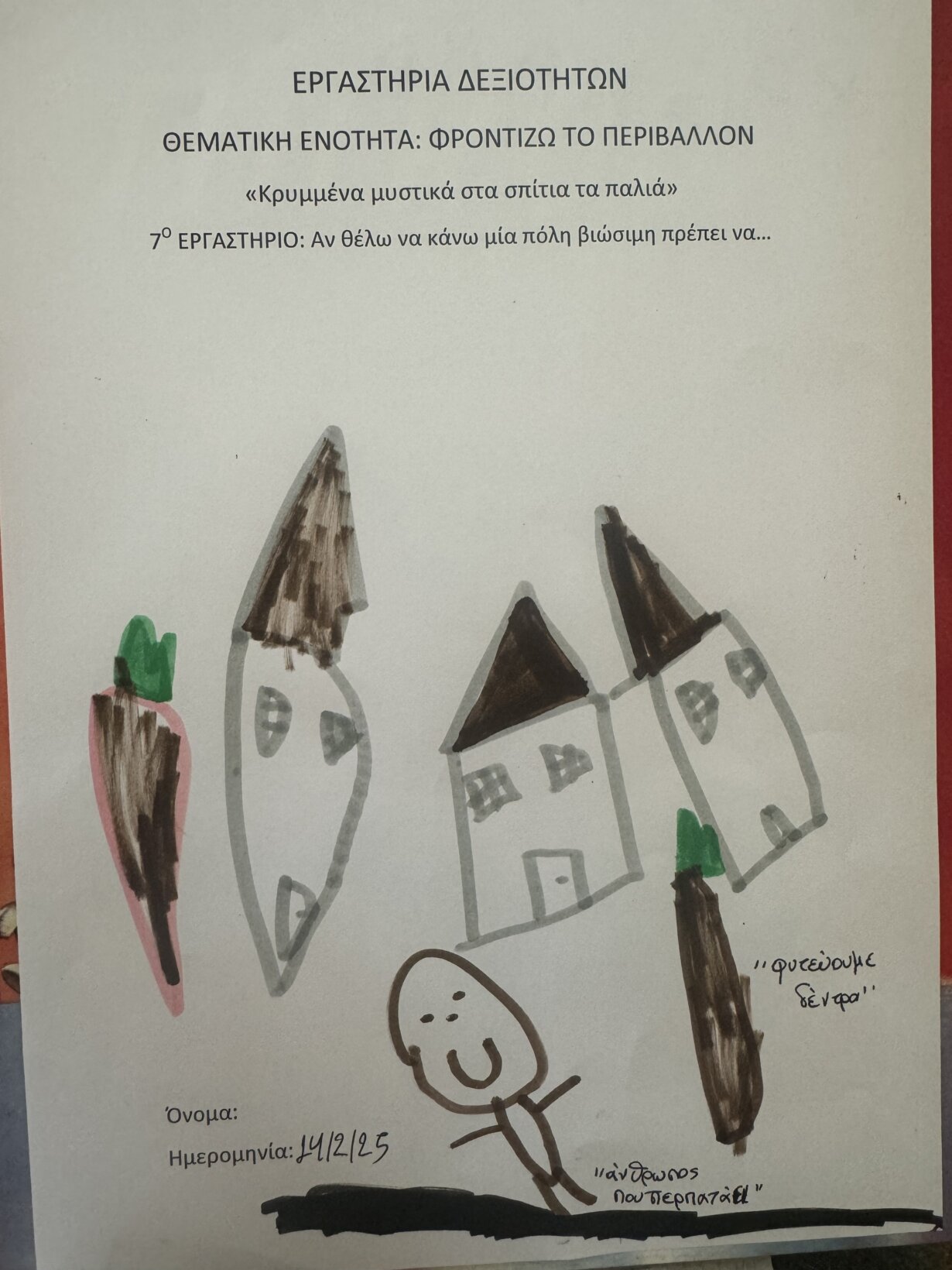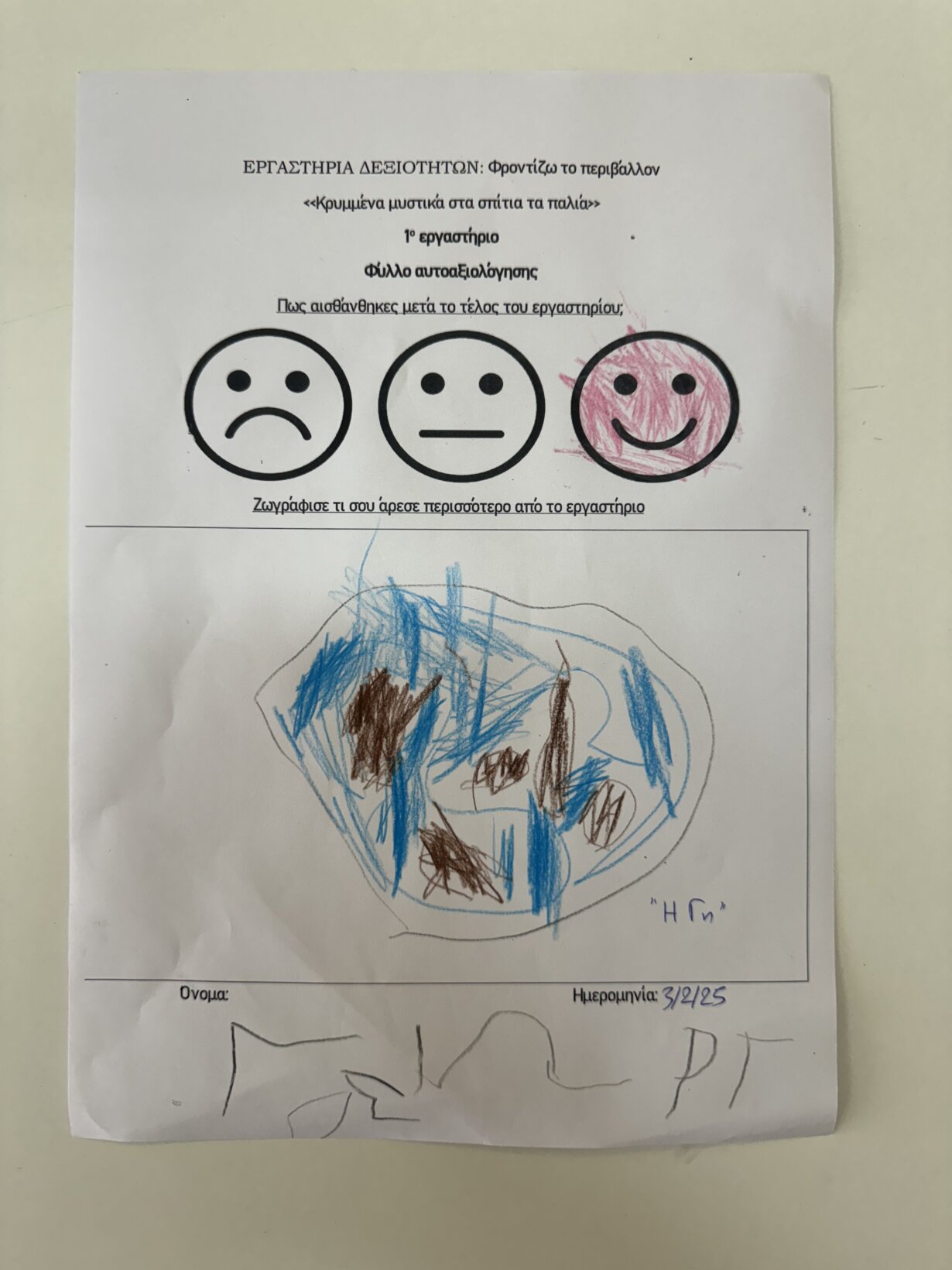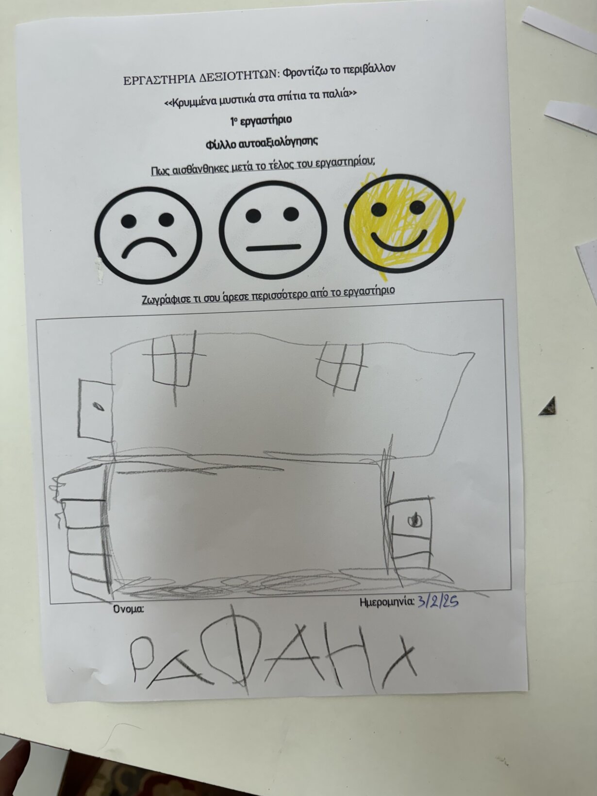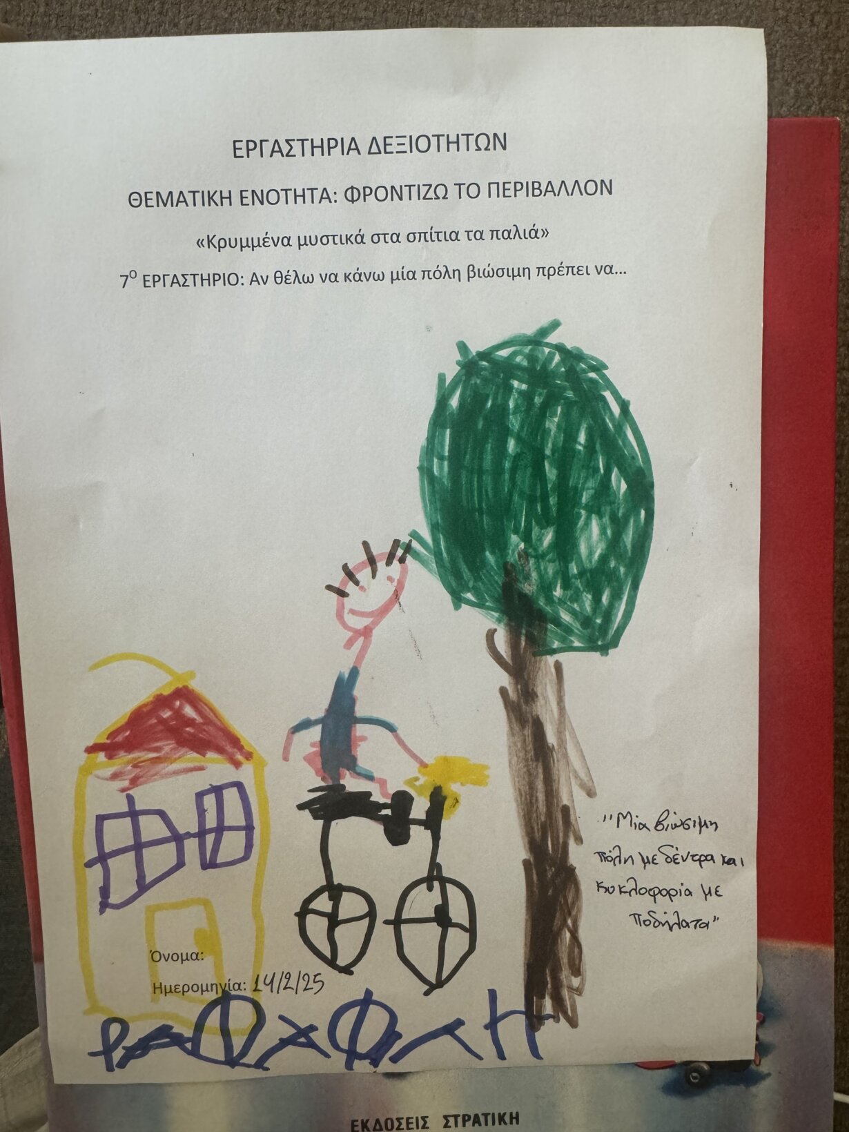 Τα παιδιά μέσω της ζωγραφικής τους έδειξαν πως κατανόησαν τα περί βιοκλιματικής σχεδίασης και κατασκευής  ενός σπιτιού, αφού ζωγράφισαν σπίτια που τα περιβάλλει η φύση, αλλά και σπίτια αναβαθμισμένα ενεργειακά με τη χρήση φωτοβολταϊκών συστημάτων στη σκεπή τους!