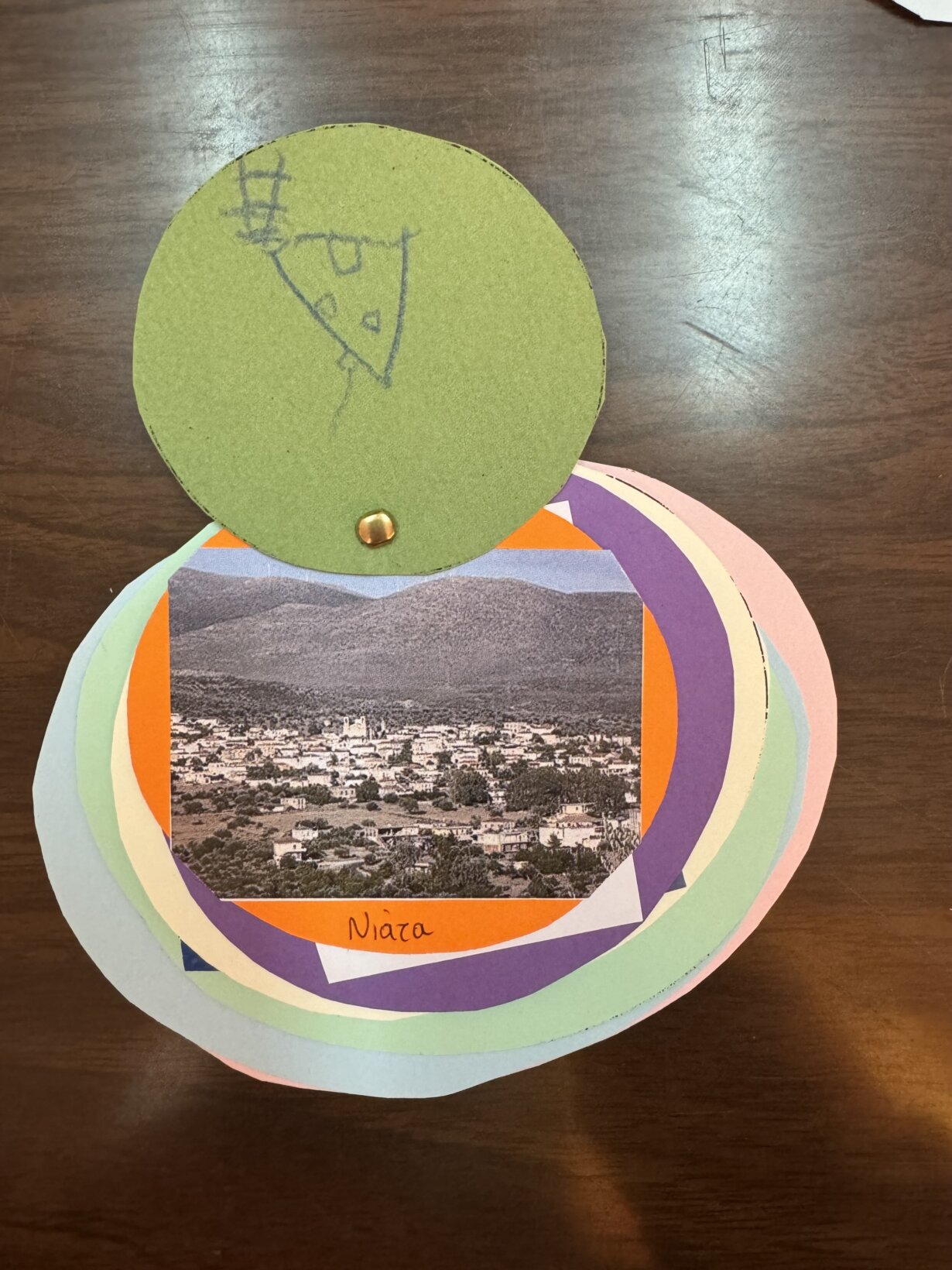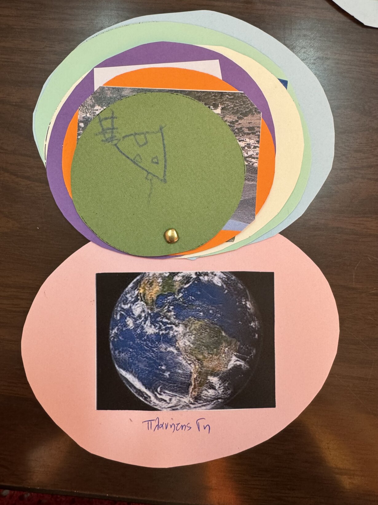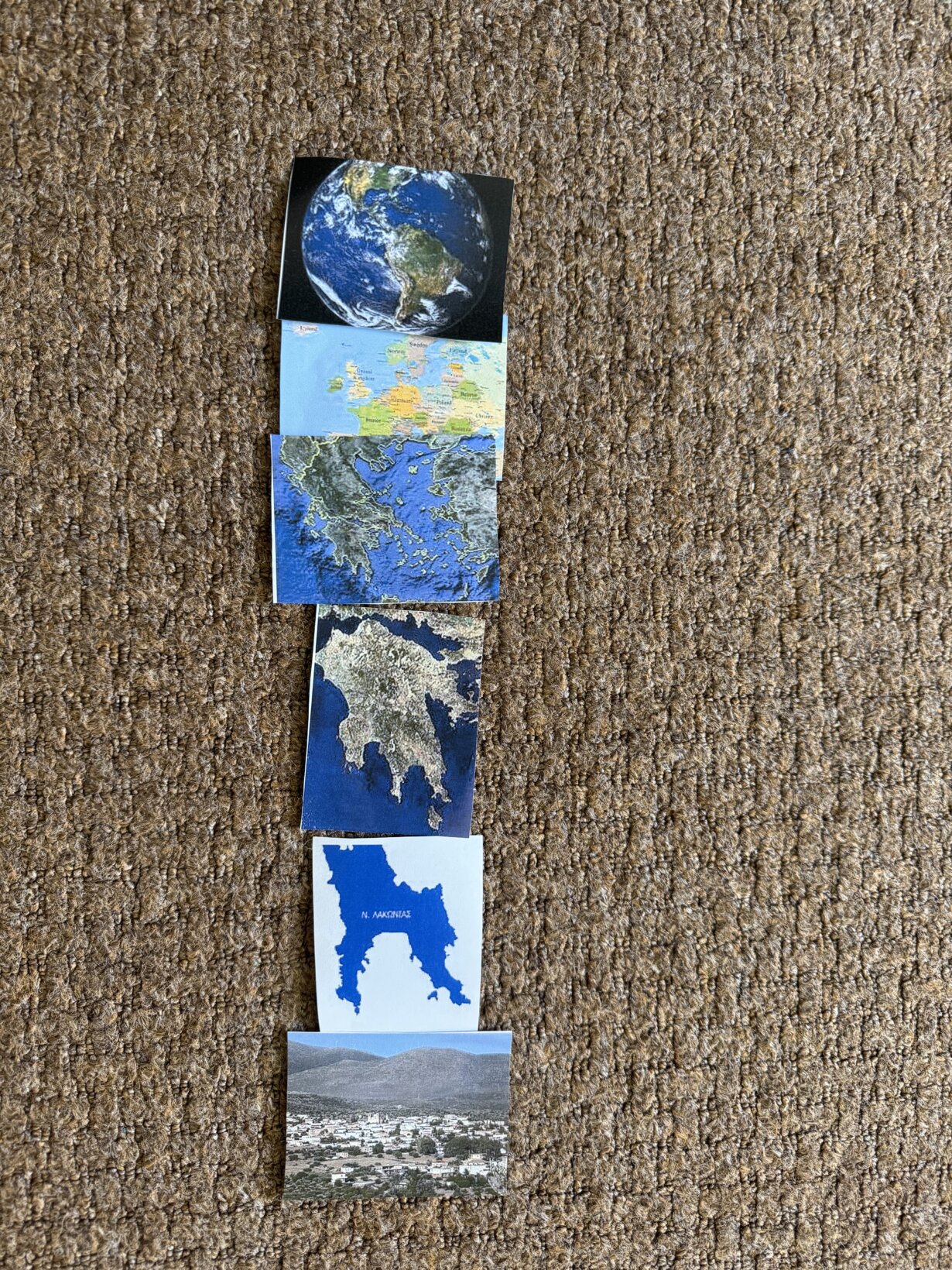 Με τα παιδιά παρατηρήσαμε εικόνες που απεικόνιζαν από τον πλανήτη Γη (δηλαδή από το γενικό) μέχρι το χωριό τους τα Νιάτα  (στο ειδικό), για να υπάρξει  κατανόηση του ανήκειν, ότι ανήκουμε δηλαδή σε κάτι μεγάλο όπως είναι ο πλανήτης Γη και φτάνουμε στο ειδικό στο μικρότερο, που είναι ο τόπος μας και το σπίτι μας.