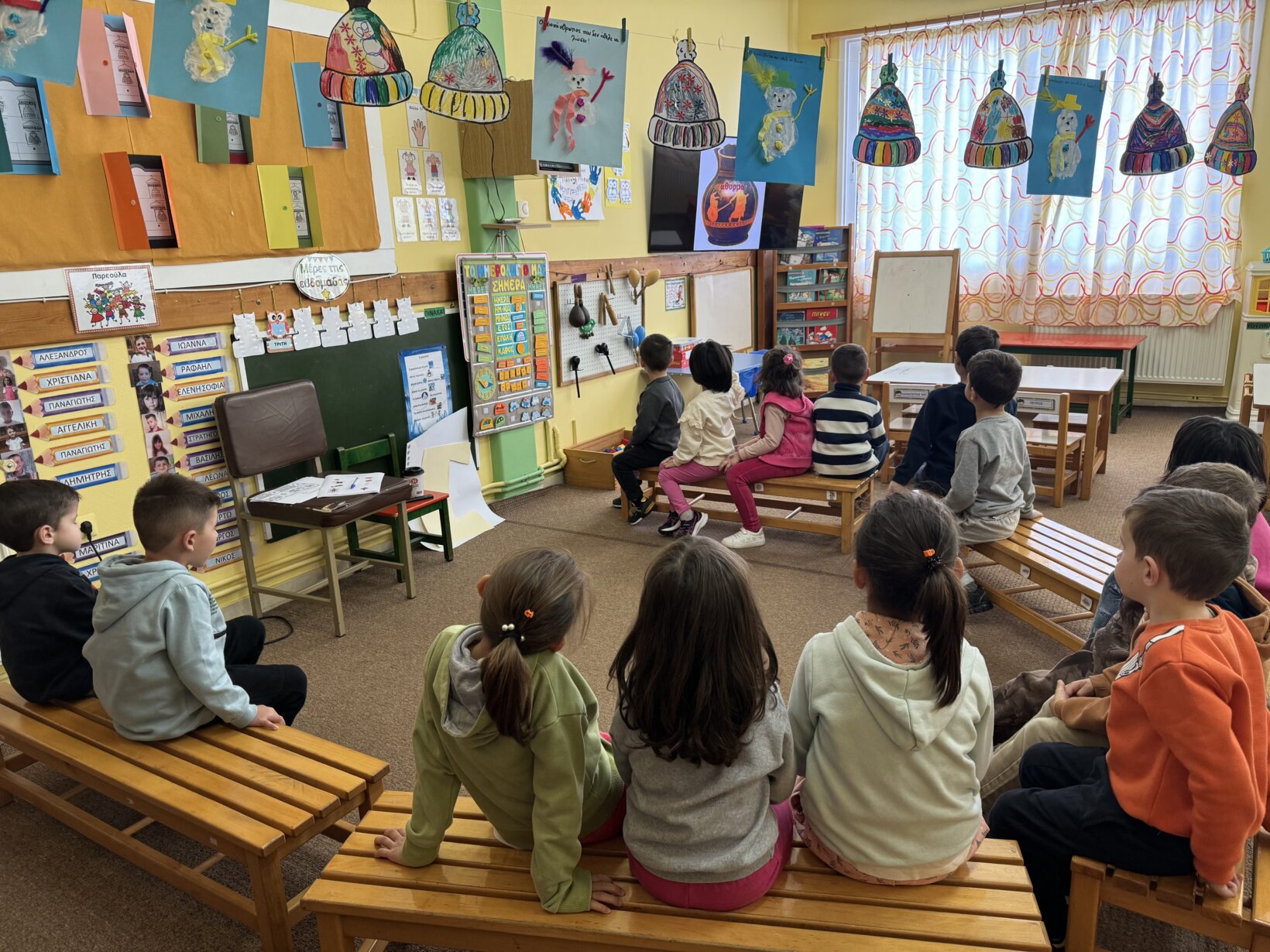 • Αγώνας με μπαλόνια: Τα παιδιά χωρίστηκαν σε ζευγάρια και το κάθε ζευγάρι κράτησε ένα μπαλόνι ανάμεσα στα σώματά του. Ο στόχος ήταν να φτάσουν στη γραμμή τερματισμού χωρίς να αφήσουν το μπαλόνι να πέσει κάτω. Το παιχνίδι γέμισε την αίθουσα με ενθουσιασμό και γέλια. Τα παιδιά έπρεπε να συνεργαστούν, να συντονίσουν τα βήματα τους και να στηρίξουν το ένα το άλλο για να πετύχουν το στόχο. Όποιο ζευγάρι τερμάτιζε πρώτο χωρίς να πέσει το μπαλόνι, κέρδιζε! Μέσα από αυτή τη δραστηριότητα τα παιδιά ανακάλυψαν πόσο σημαντική είναι η επικοινωνία και η στήριξη του φίλου που έχουν δίπλα τους.