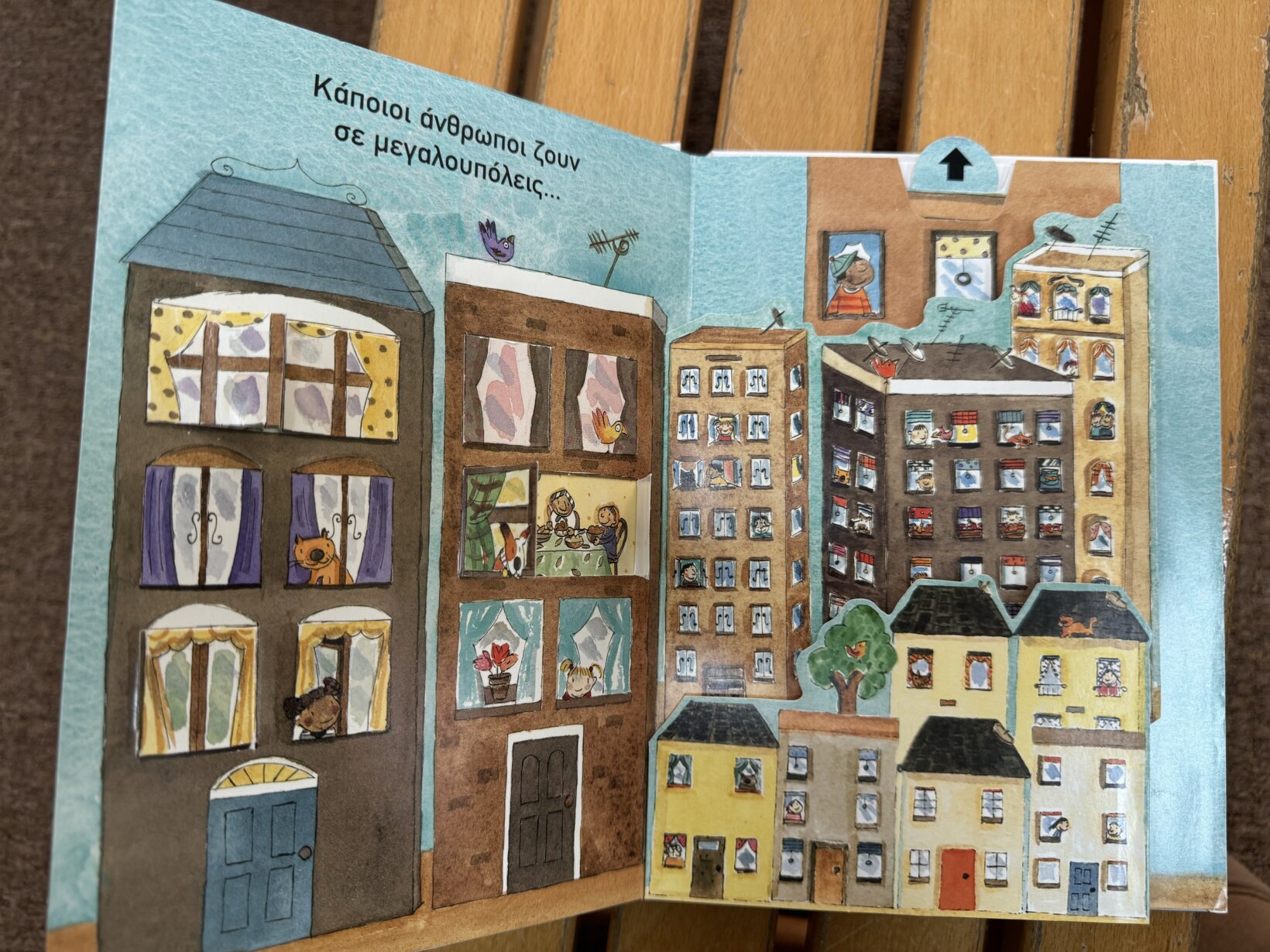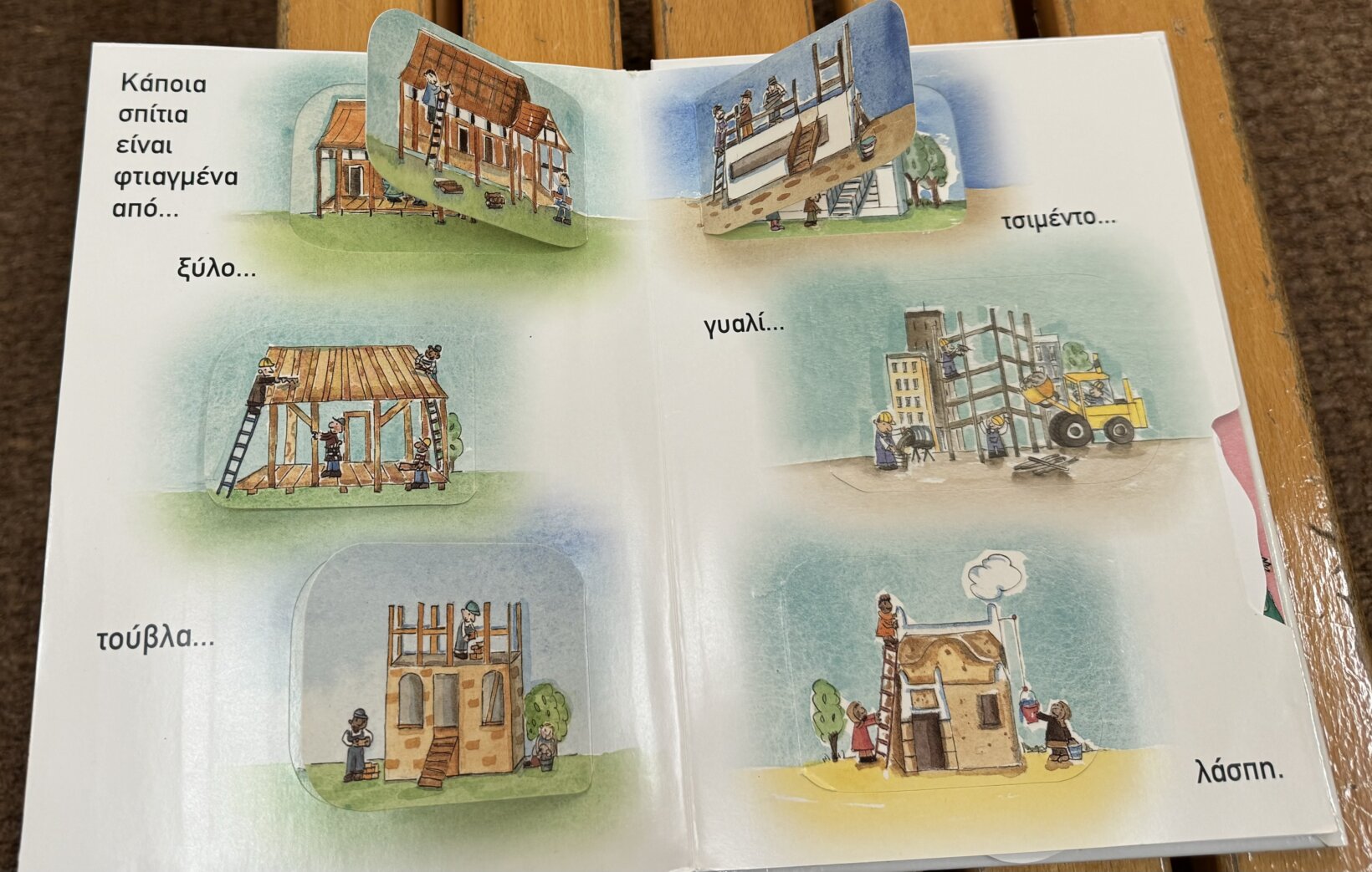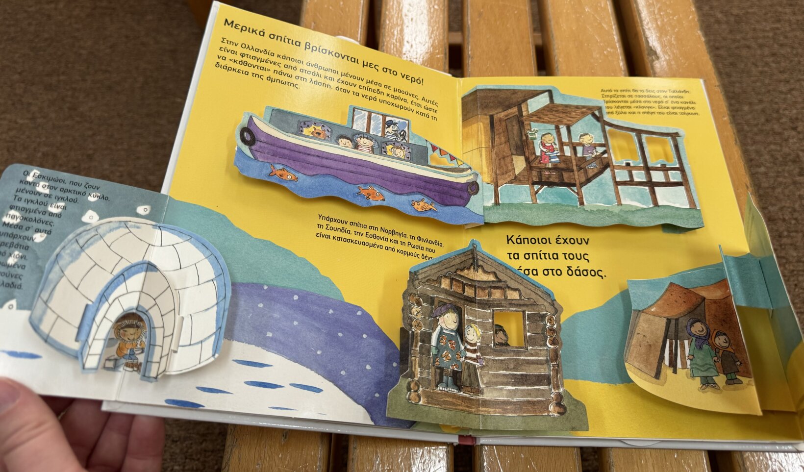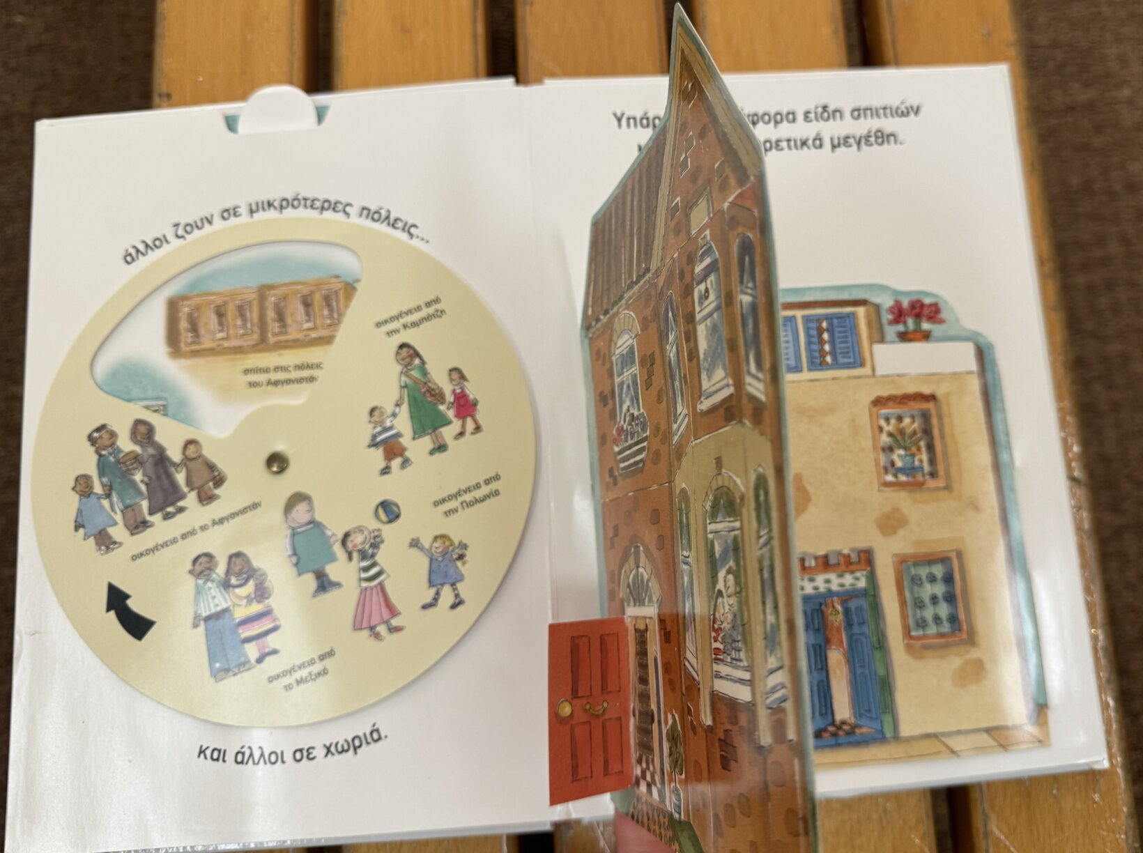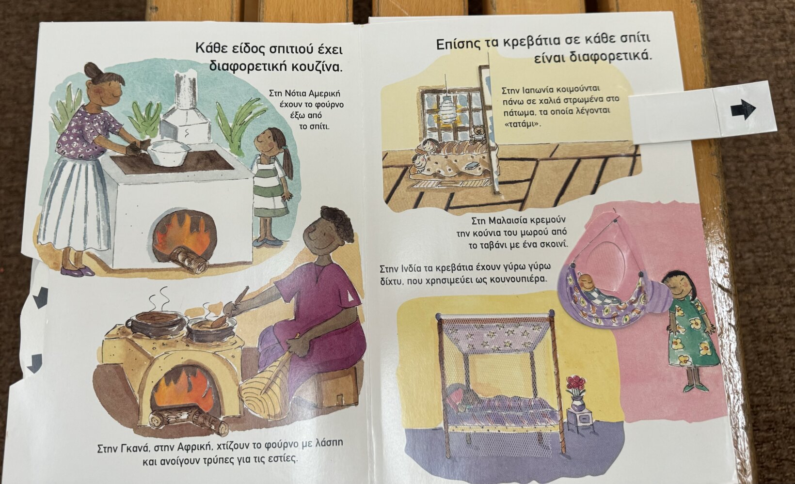 Επίσης διαβάσαμε το βιβλίο «Τα σπίτια του κόσμου, όλη  η Γη ένα χωριό» των εκδόσεων Σαββάλας. Το βιβλίο αυτό βοήθησε τα παιδιά να συγκρίνουν σύγχρονες μορφές κατοικιών σε διάφορες  χώρες  του κόσμου καθώς και  να συμπεράνουν ότι η κατοικία και οι ανάγκες που ικανοποιεί και η λειτουργικότητά της μένουν ίδια παρότι αλλάζει η μορφή της.