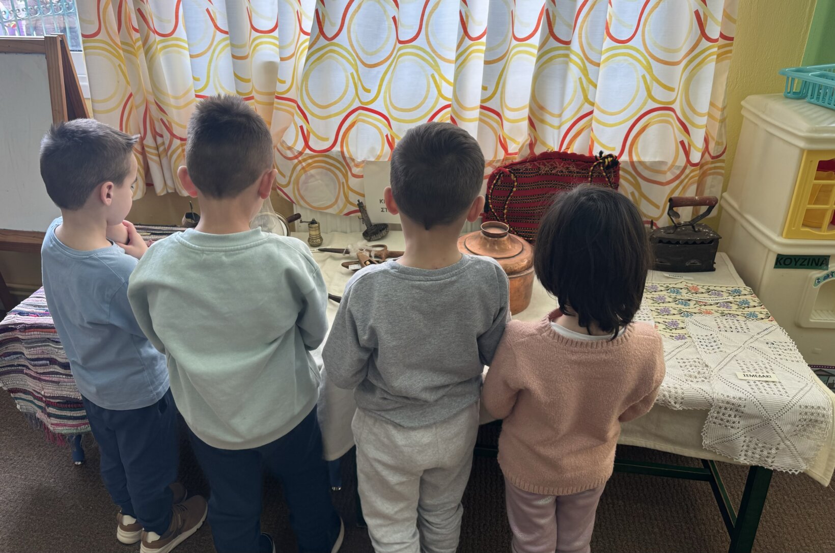 Τα παιδιά παρατήρησαν τα αντικείμενα της έκθεσής μας και έμαθαν τη χρησιμότητά τους από την εκπαιδευτικό.