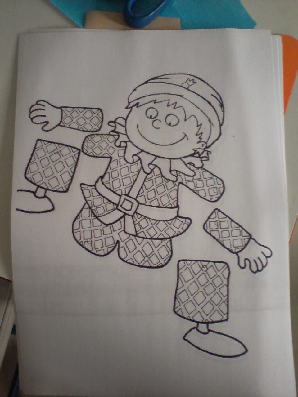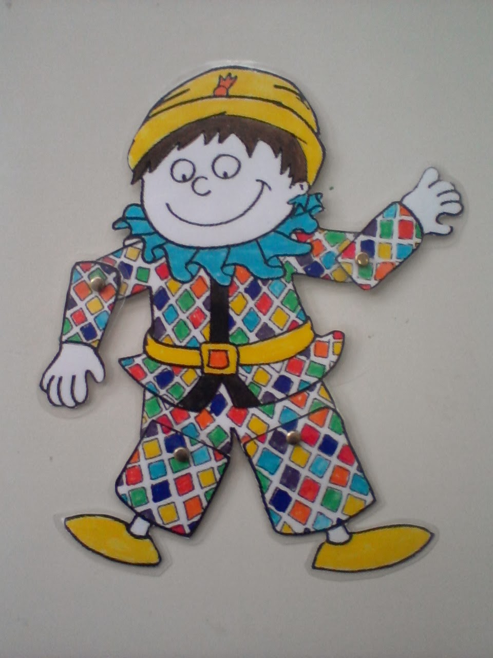 Κατόπιν φτιάξαμε τον Αρλεκίνο του παραμυθιού σαν μαριονέτα με τον οποίο τα παιδιά ξετρελλάθηκαν και έπαιξαν στο κουκλοθέατρο.