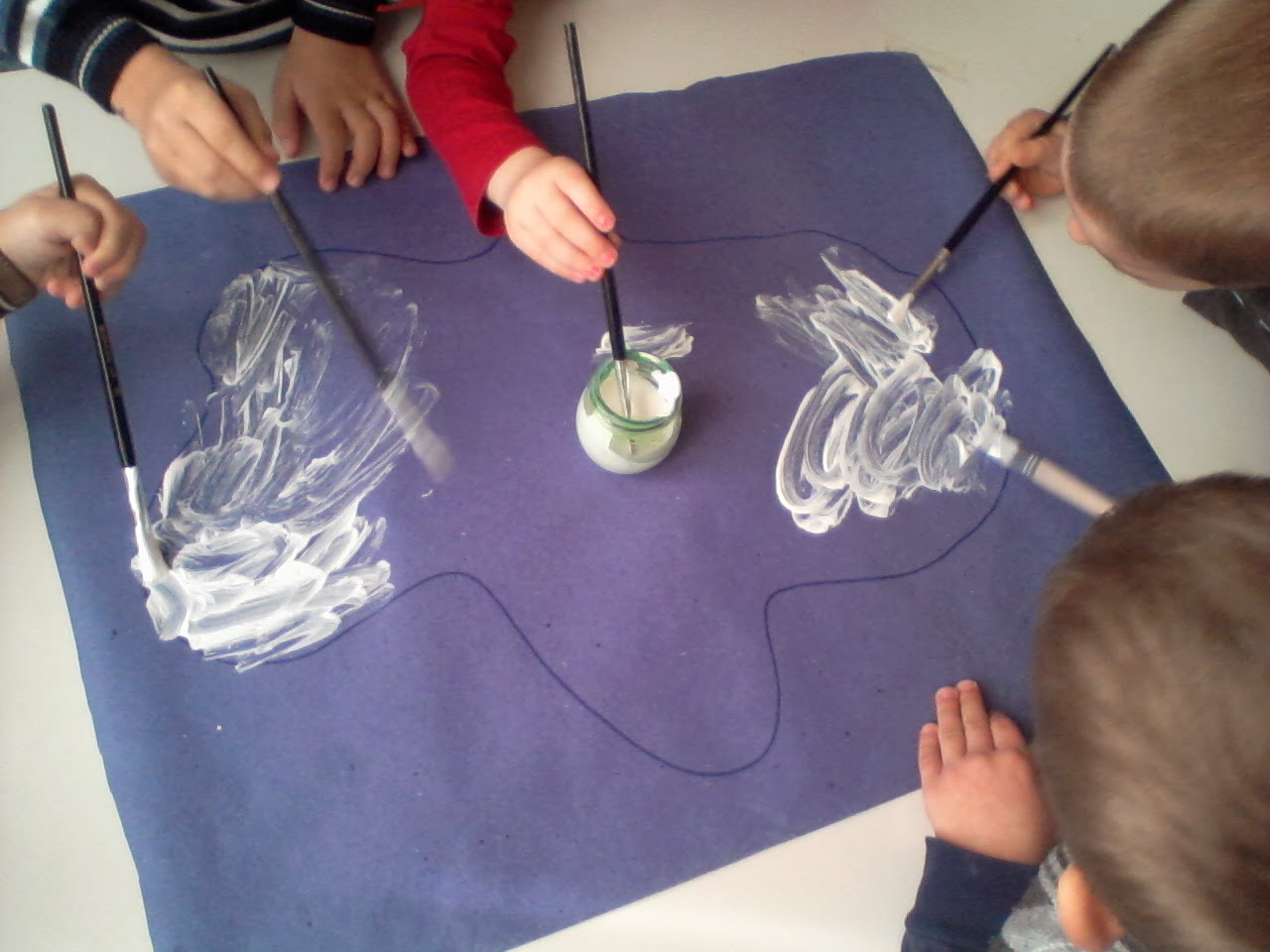 2. Βάφουμε με άσπρη τέμπερα γιατί έχει πολύ χιόνι