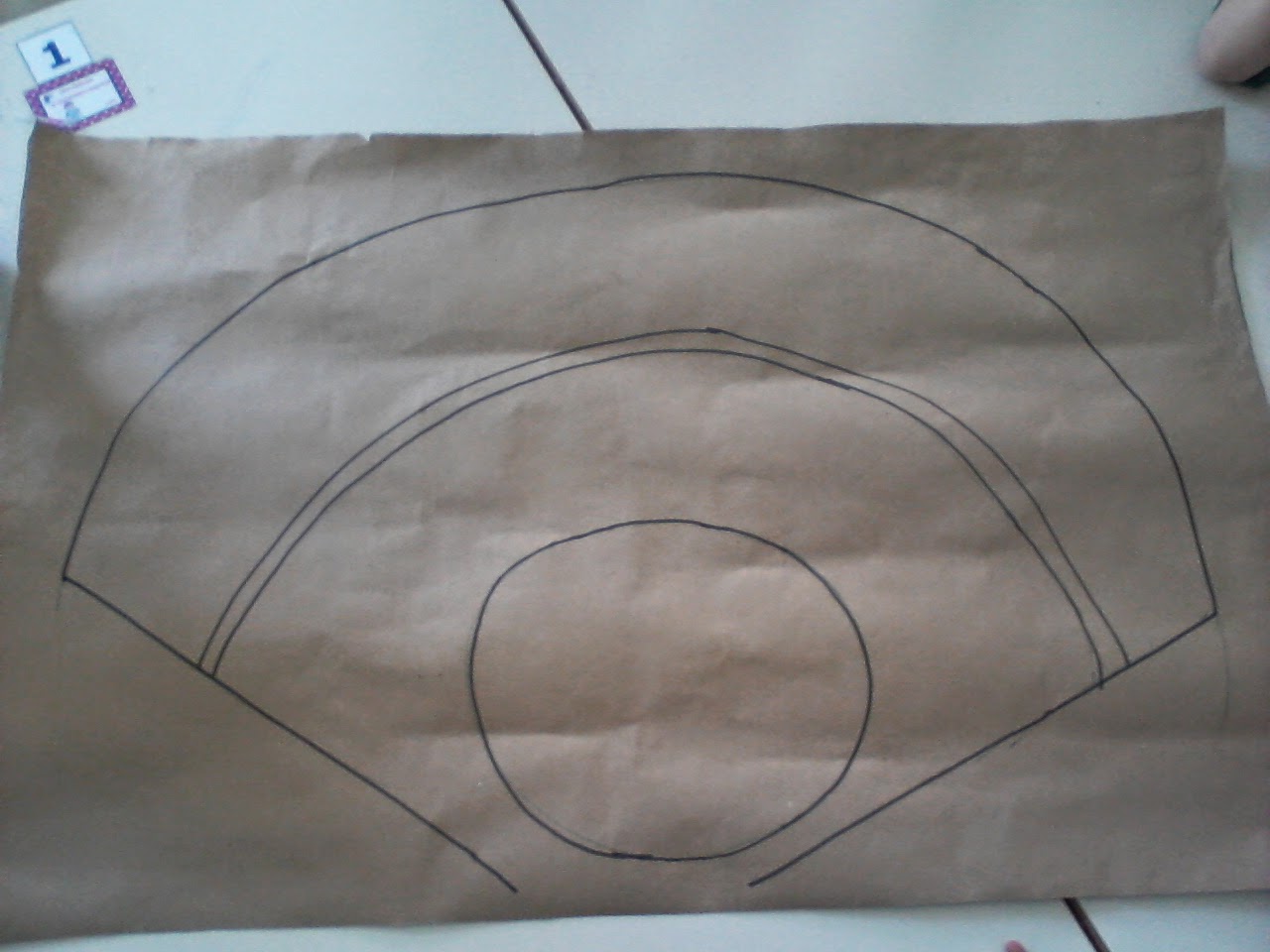 Επόμενο βήμα ήταν να φτιάξουμε τη μακέτα του αρχαίου θεάτρου. Κατόπιν συζητήσεως αποφασίσαμε να το κάνουμε σε καφέ χαρτί για να μοιάζει με την άμμο.